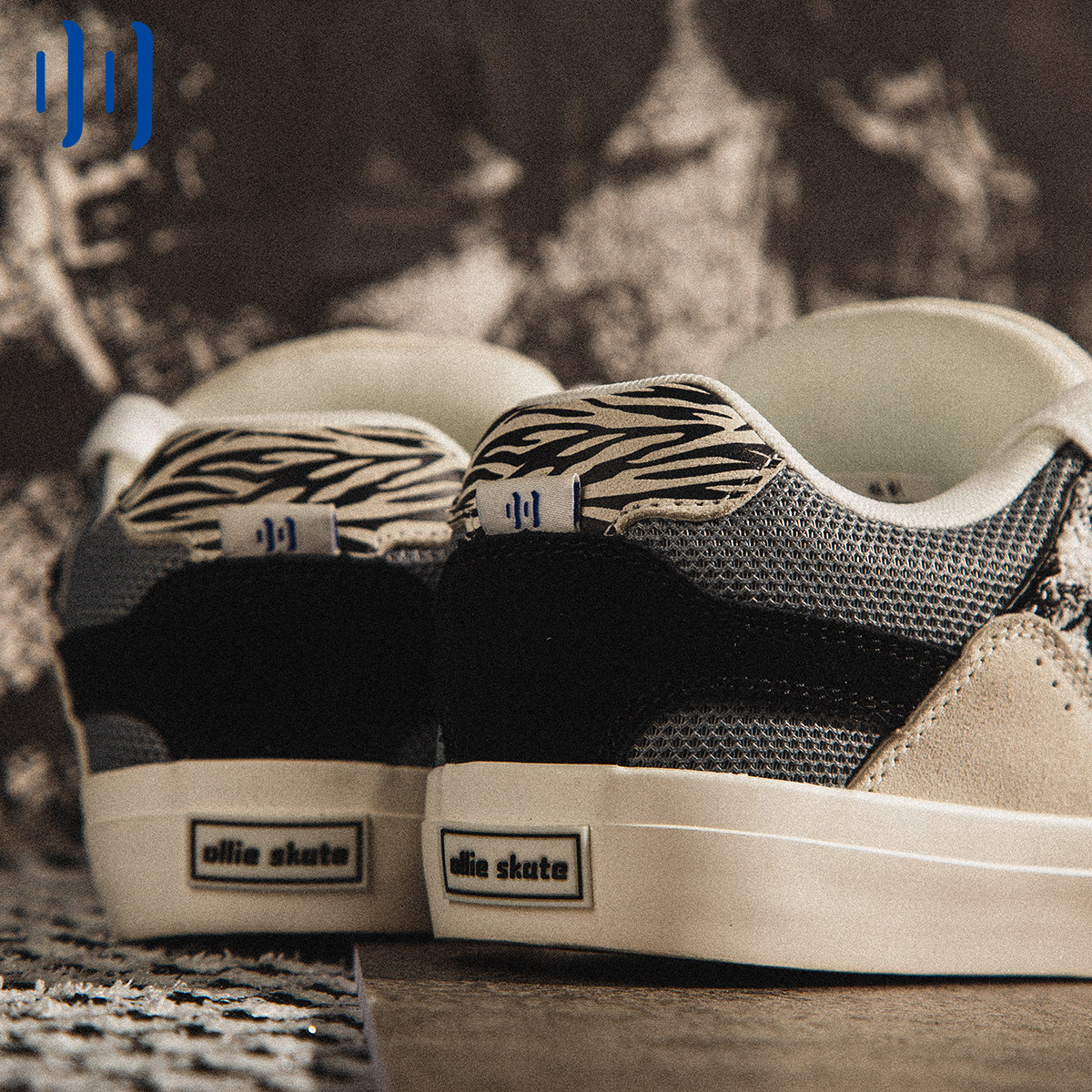 顽刻ollieskate面包鞋 斑马纹格子小香风翻毛皮拼接BAKE2滑板鞋由