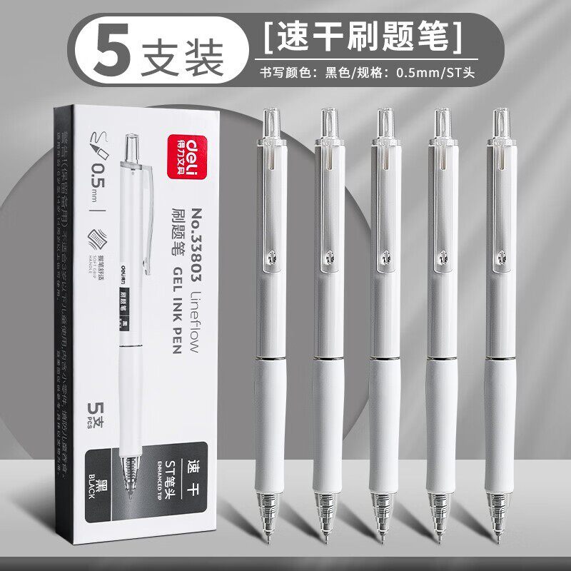 为您提供商品得力ST笔尖小白笔高颜值速干按动中性笔黑笔刷题笔专用日系顺滑学生用初中0.5黑色签字水性碳素圆珠笔笔芯的详细介绍,