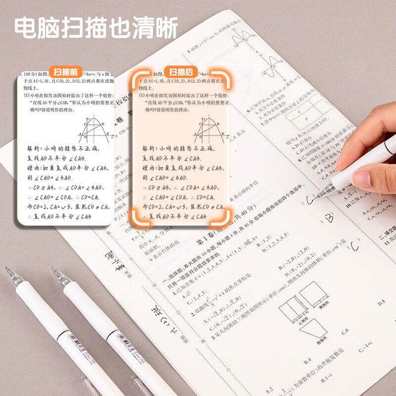 得力ST笔尖小白笔高颜值速干按动中性笔黑笔刷题笔专用日系顺滑学生用初中0.5黑色签字水性碳素圆珠笔笔芯
