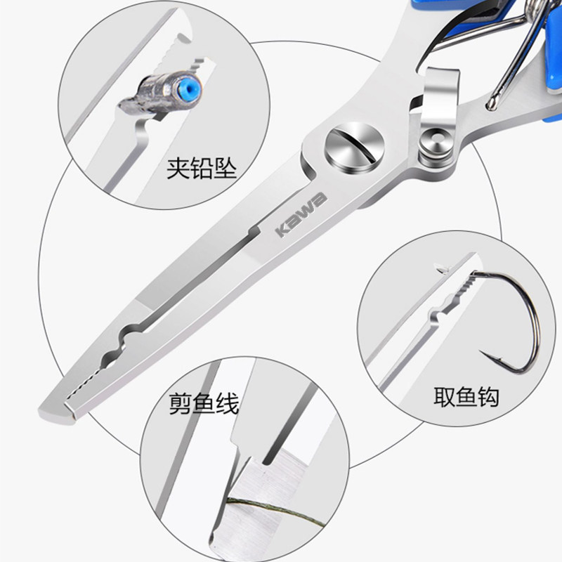 KAWA多功能路亚钳不锈钢剪线钓鱼钳摘钩器钓鱼剪刀绑钩钳铅坠压扁由