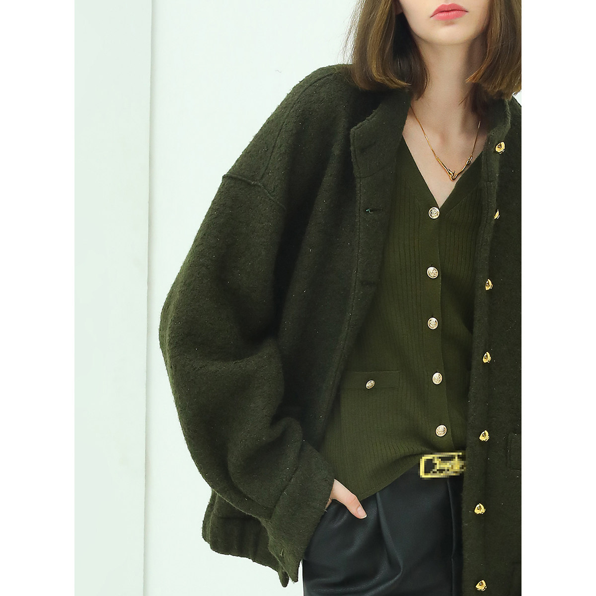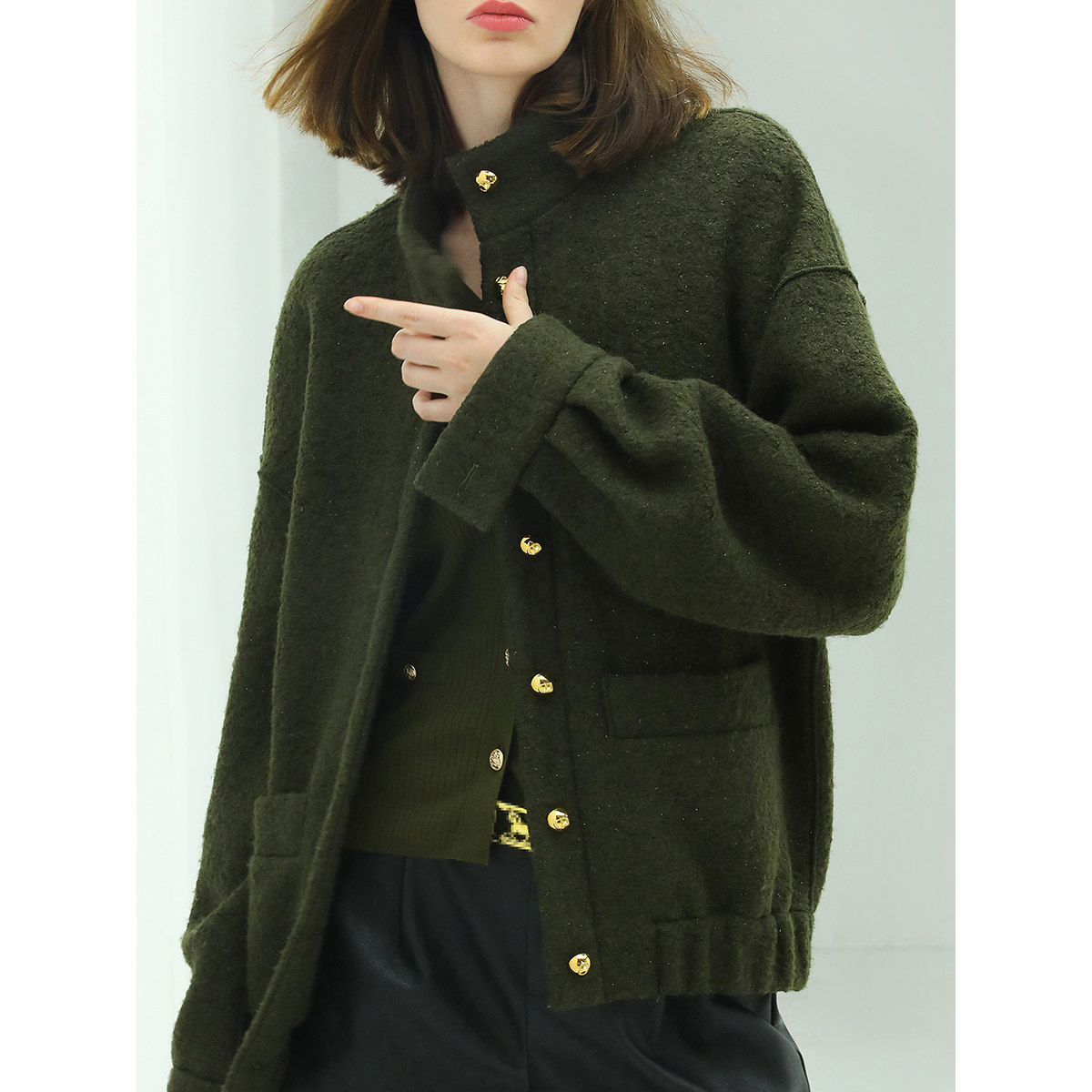 细闪银葱圈圈羊毛外套女短款 棒球服夹克WL903 苔藓绿 COCOBELLA由