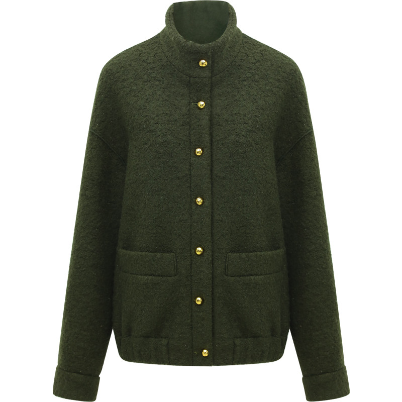 细闪银葱圈圈羊毛外套女短款 棒球服夹克WL903 苔藓绿 COCOBELLA