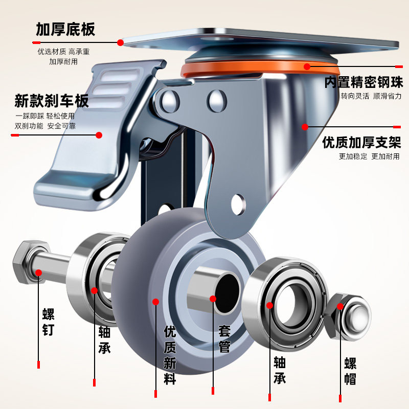 承重万向轮轮子大全超静音滑轮移动底座带刹车小推车定向脚轮滚轮