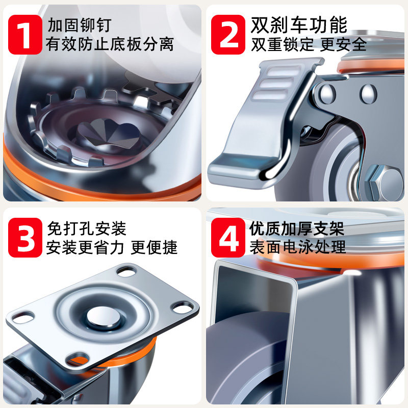 重型万向轮轮静音脚轮转向轮滑轮定向承重轮带刹车小轮子移动滚轮