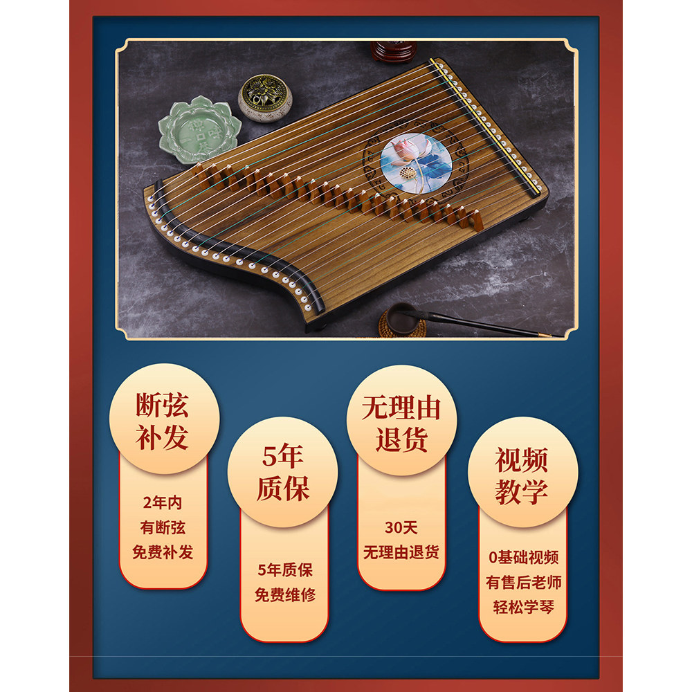 古筝21弦儿童成人初学者小型入门乐器檀木迷你专业小古筝琴 便携式
