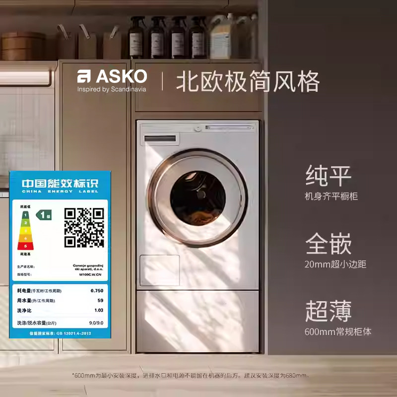 9kg洗衣机W109C.W.CN欧洲原装 进口抗菌免清洗 初见极光 ASKO由