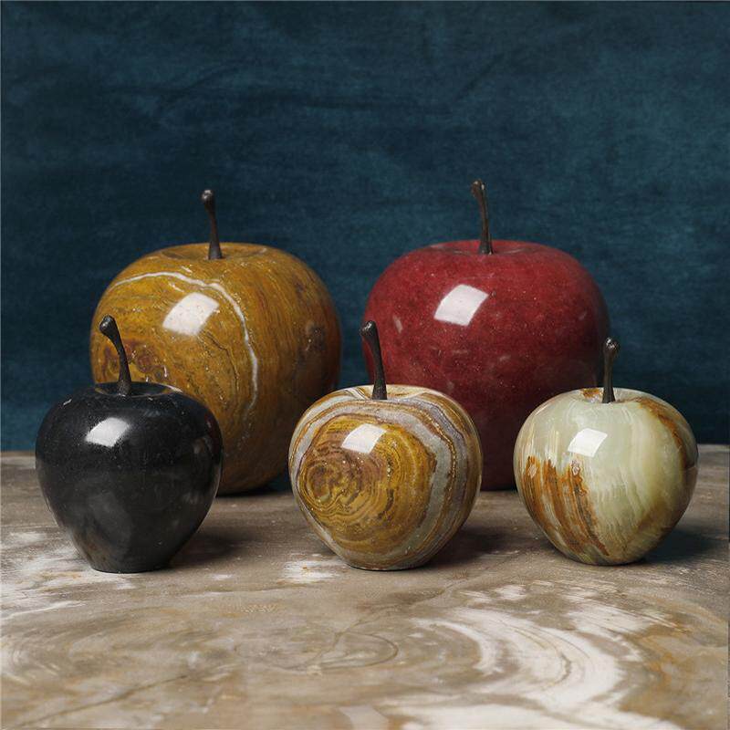饰玄关电视柜酒柜摆设 北欧实心天然大理石水晶苹果摆件玉石家居装