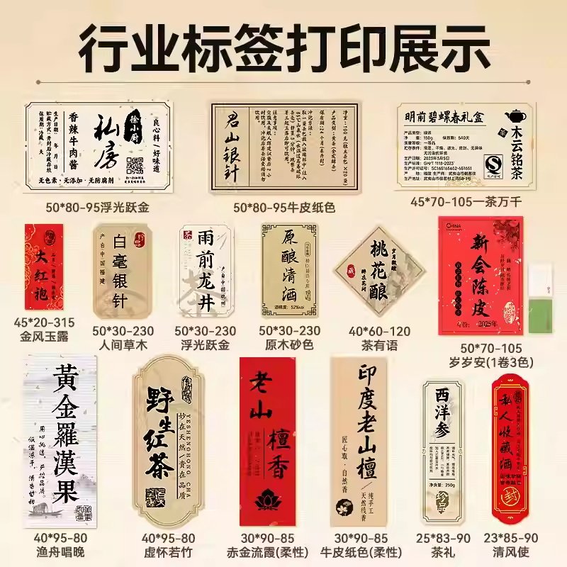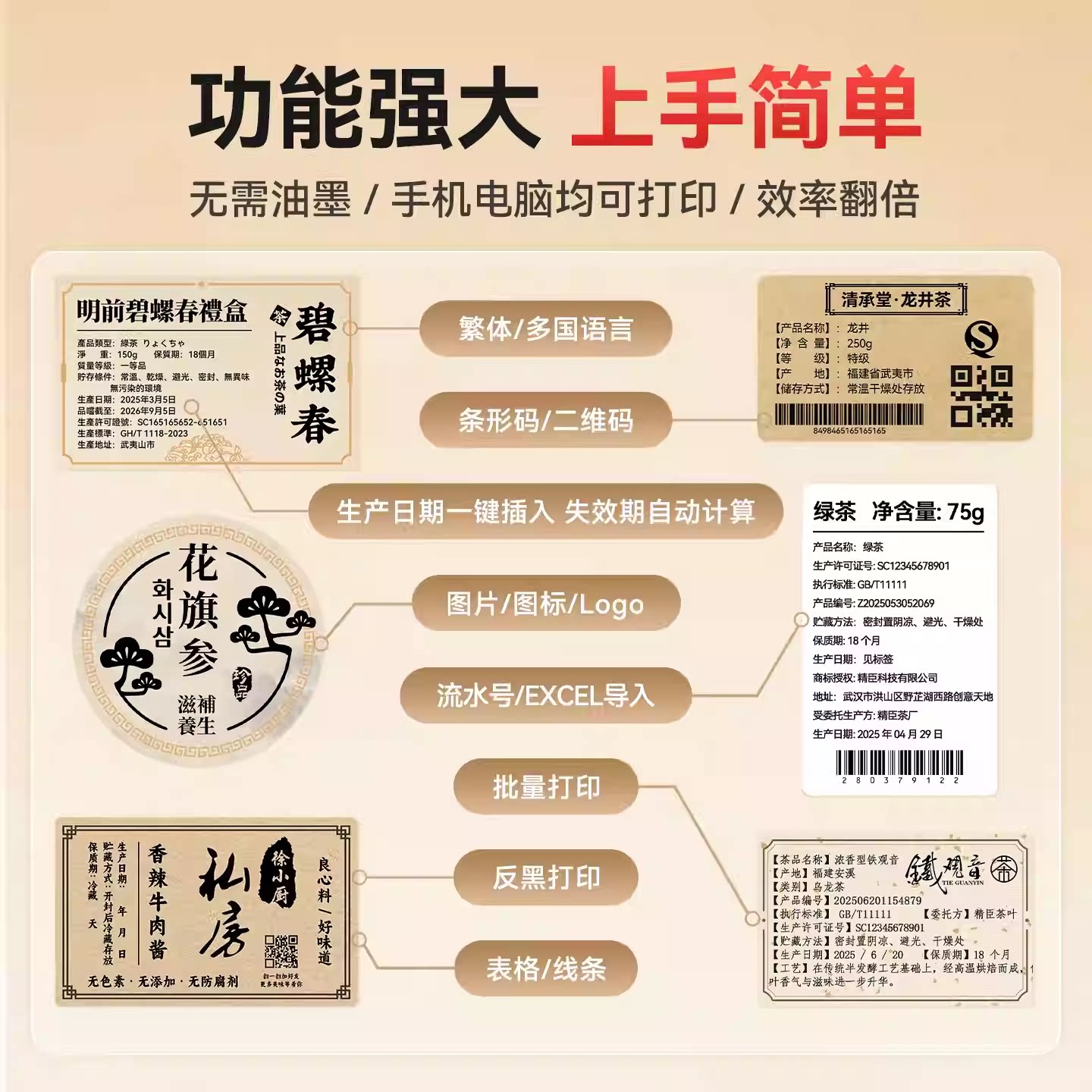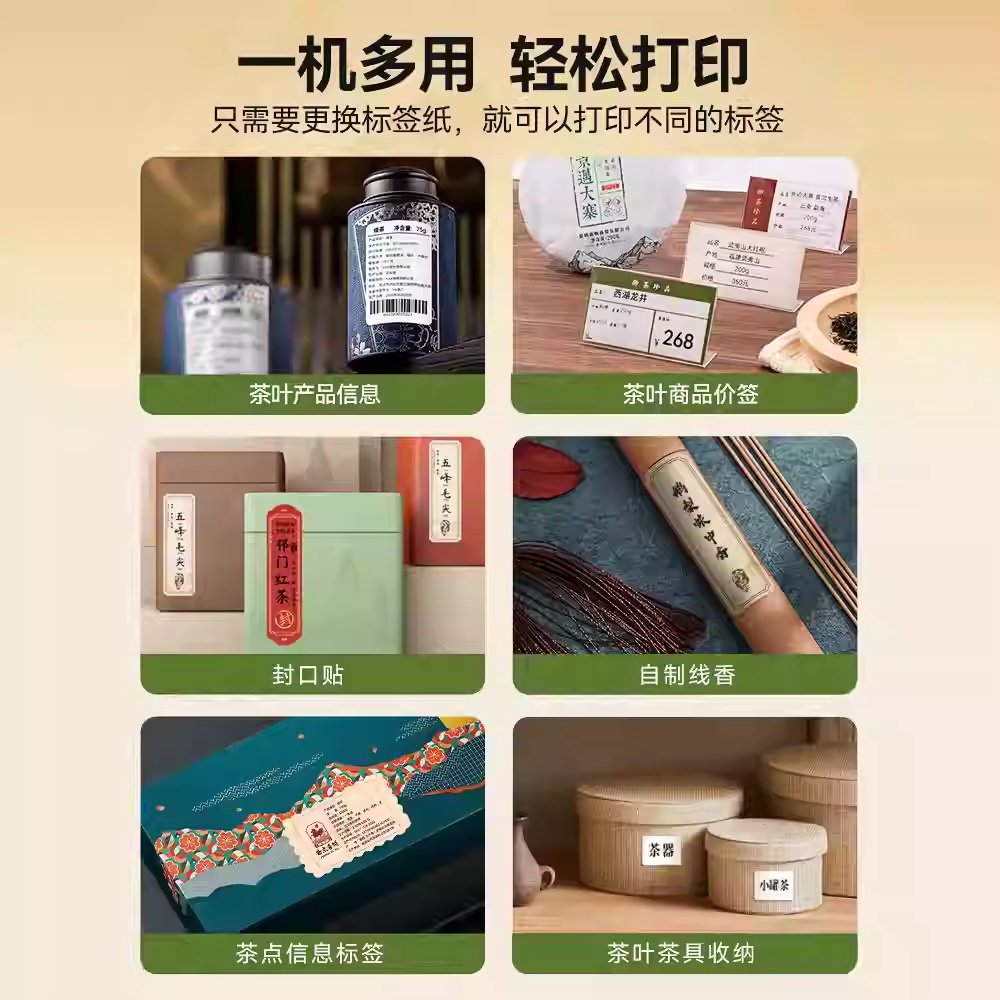 不干胶定制logo商标 精臣B1茶叶标签打印机茶饼茶罐养生茶花茶线香标签滋补中草药封口贴纸牛皮纸彩色礼盒包装由