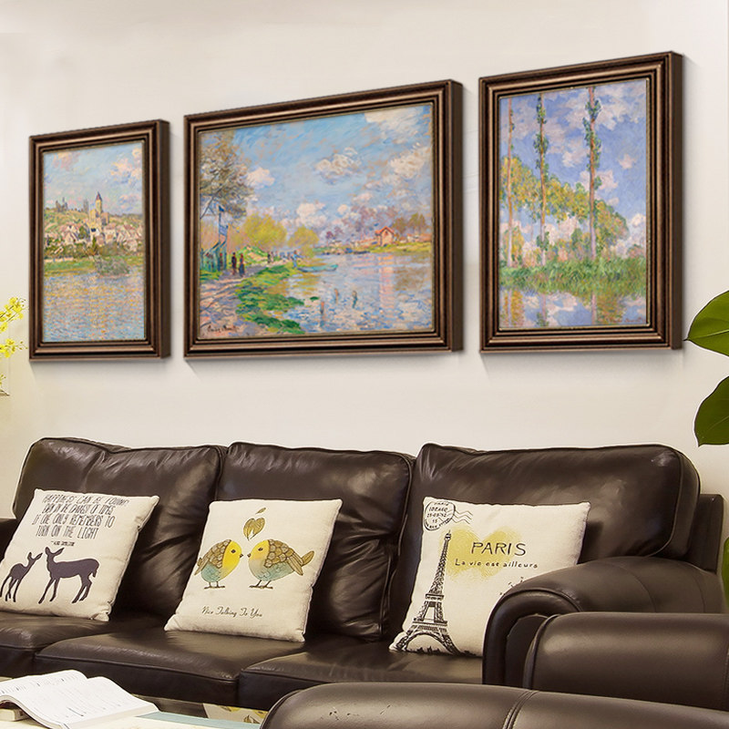 为您提供商品饰画莫奈风景油画沙发背景墙挂画三联世界名画欧式 壁画 客厅装 美式的详细介绍,