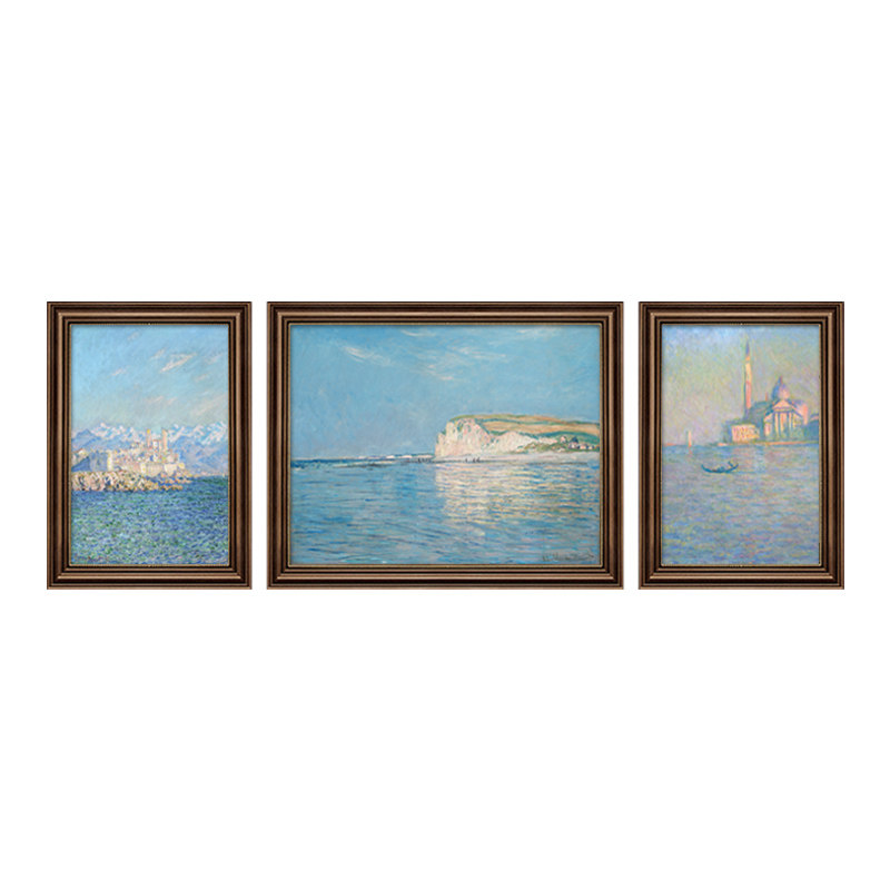 饰画莫奈风景油画沙发背景墙挂画三联世界名画欧式 壁画 客厅装 美式
