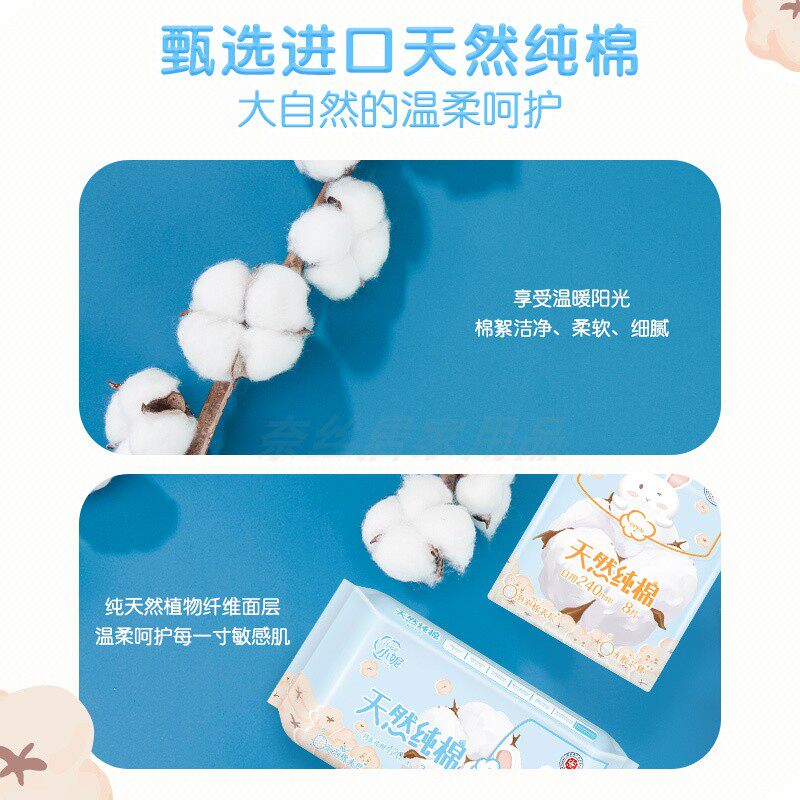 纯棉亲肤 淘淘氧棉天山白消毒级卫生巾日用240mm体验装