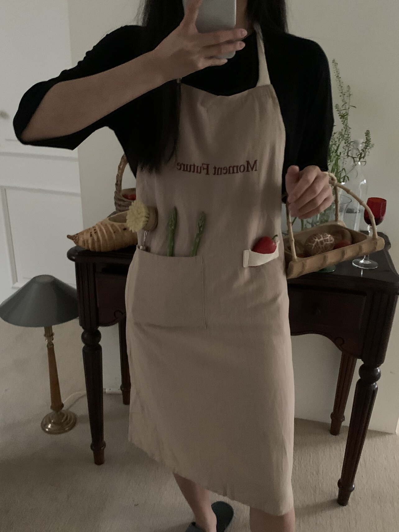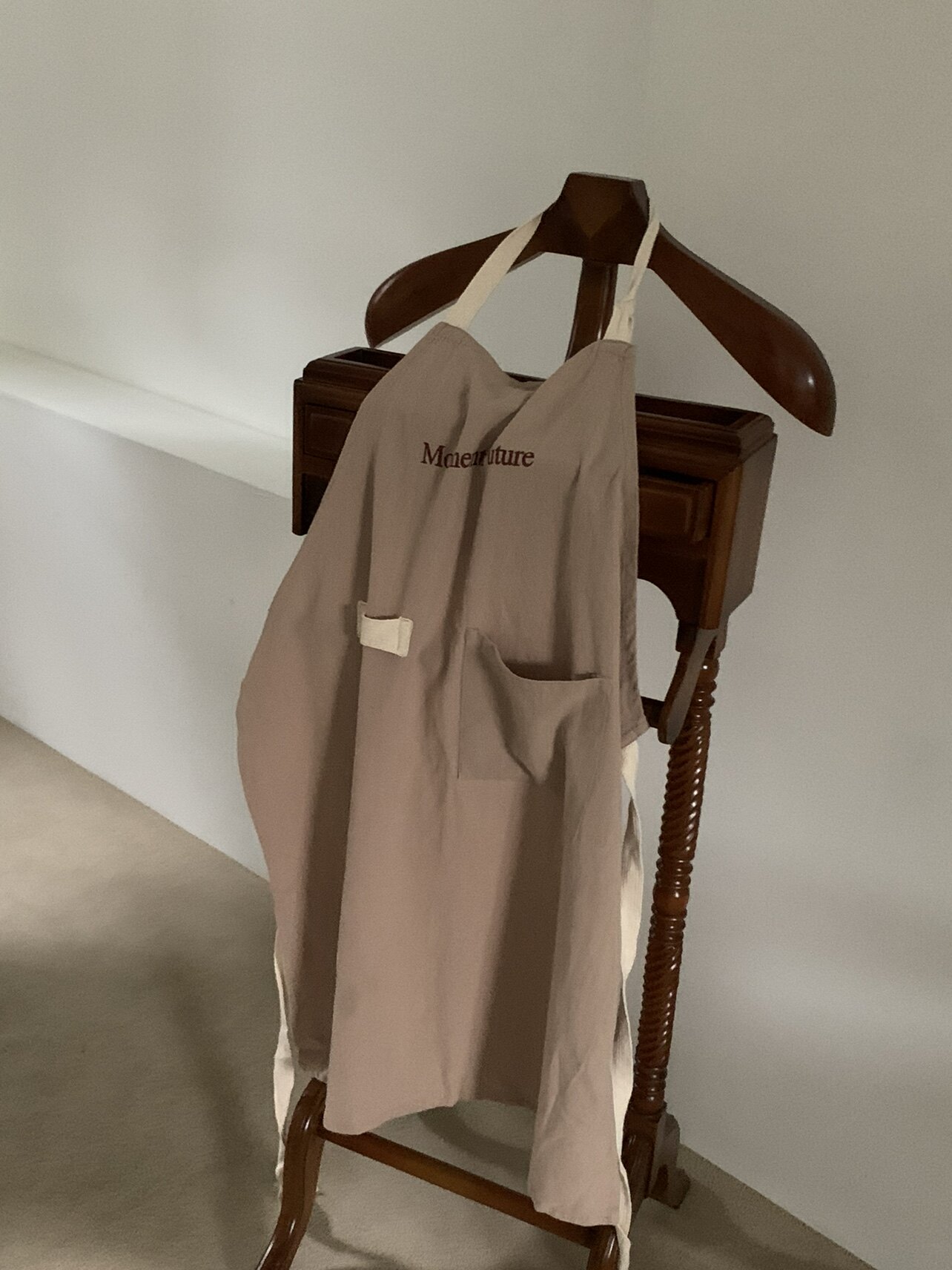 Moment Future韩系ins简约麻棉围裙复古厨房甜品围腰罩衣带口袋款由