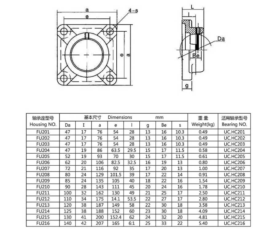 为您提供商品206 205 204 210 208 209 207 外球面轴承方形加高带座UCFU203的详细介绍,
