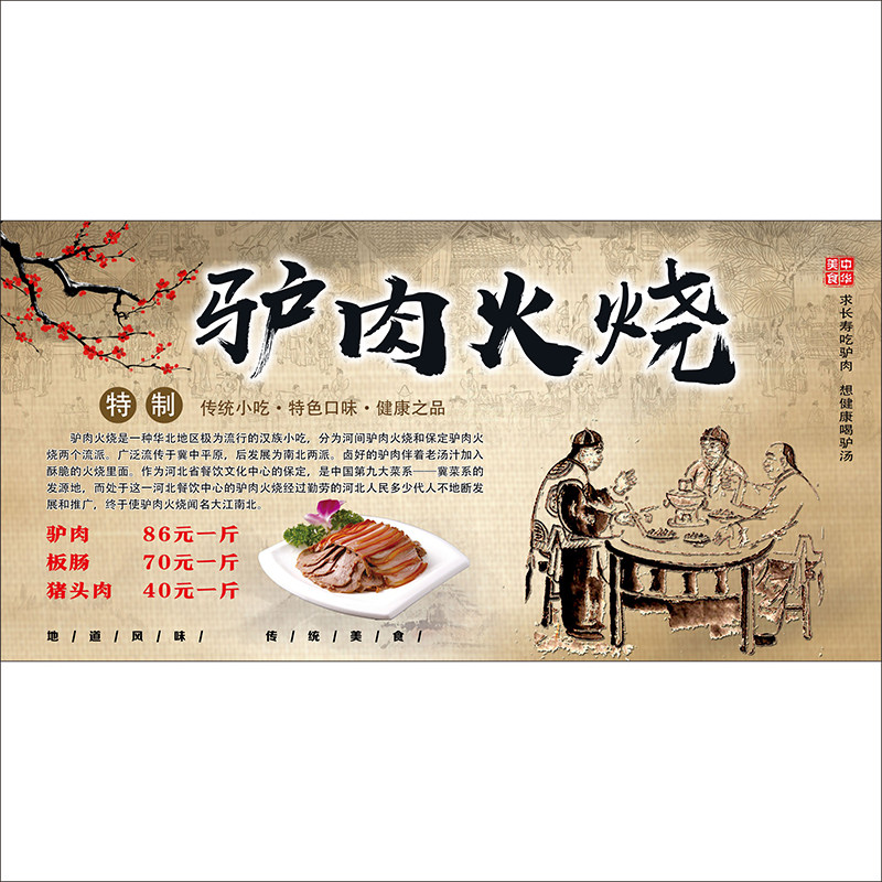 饰背景贴画2518 驴肉火烧驴肉火锅驴肉简介海报贴纸贴画驴肉馆装由