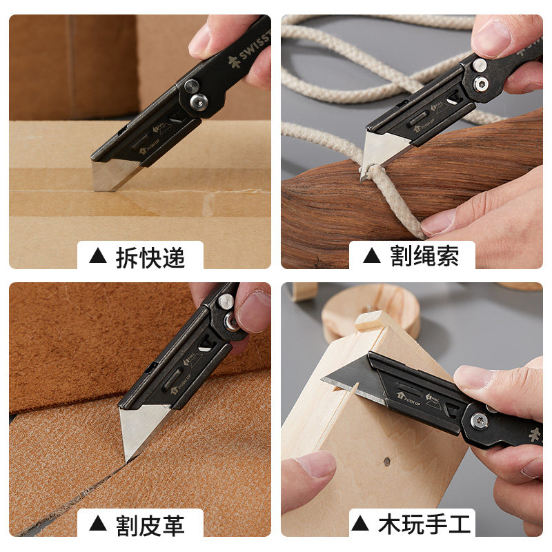 瑞士科技SWISS 快开全钢折叠美工刀快递开箱刀裁纸刀割刀片 TECH由