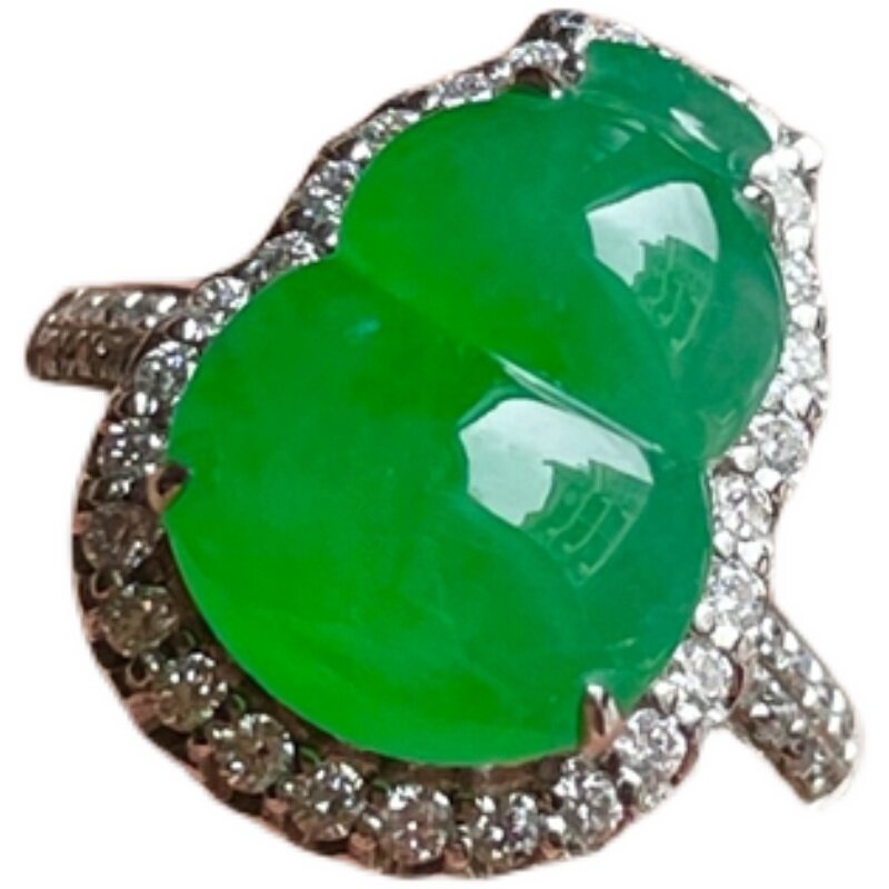 为您提供商品天然缅甸A货冰透正阳绿翡翠 戒指裸石镶嵌 冰种满绿色翡翠葫芦女款的详细介绍,