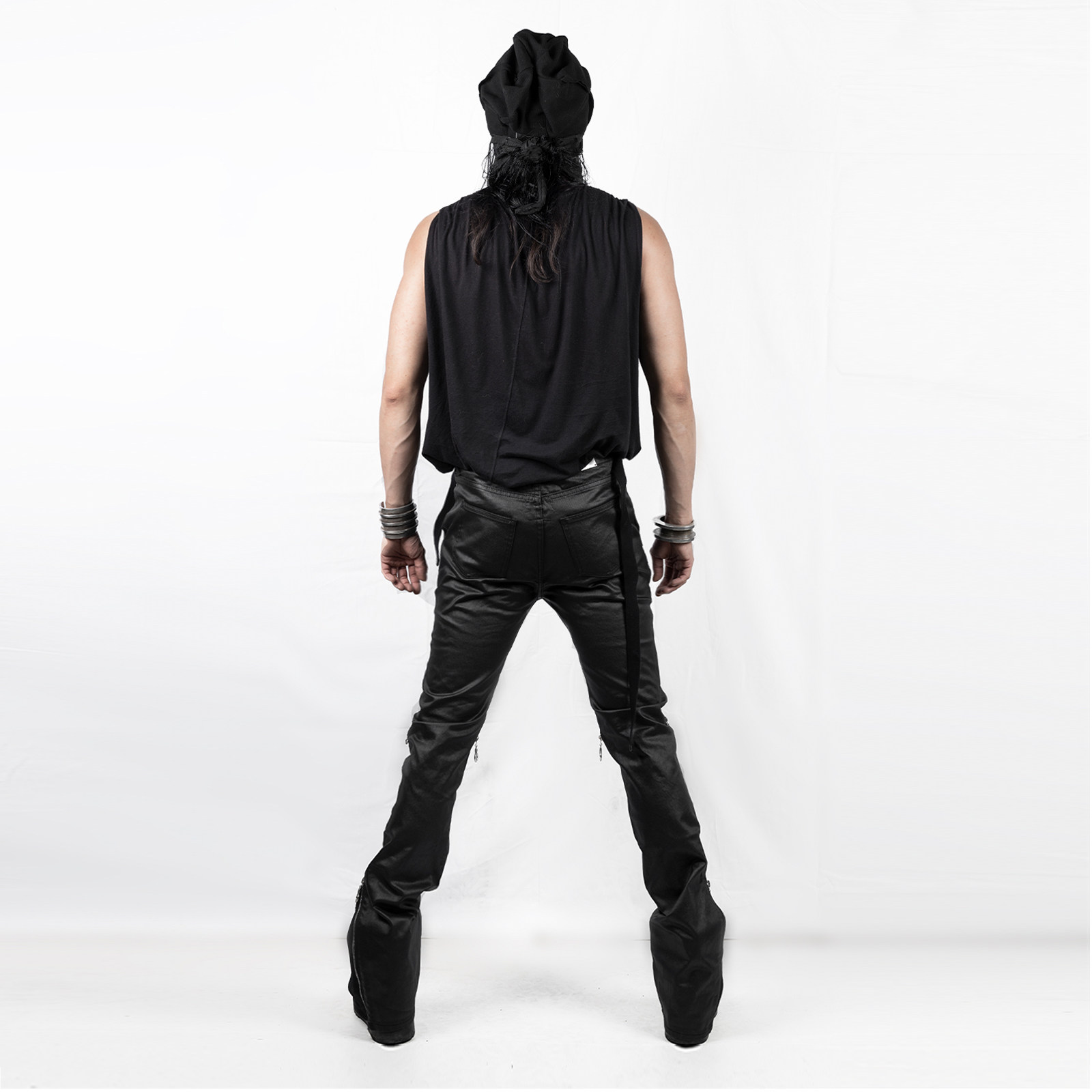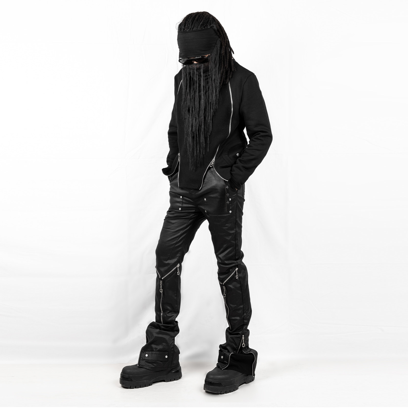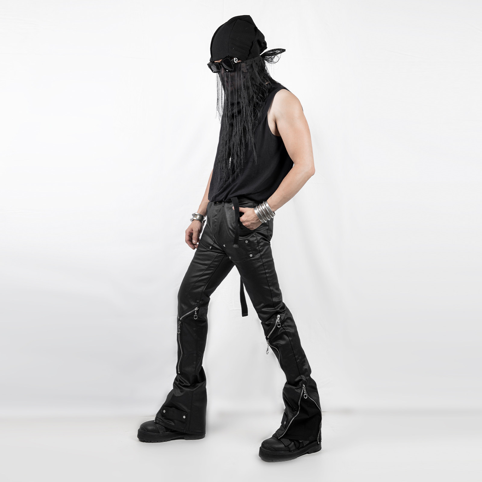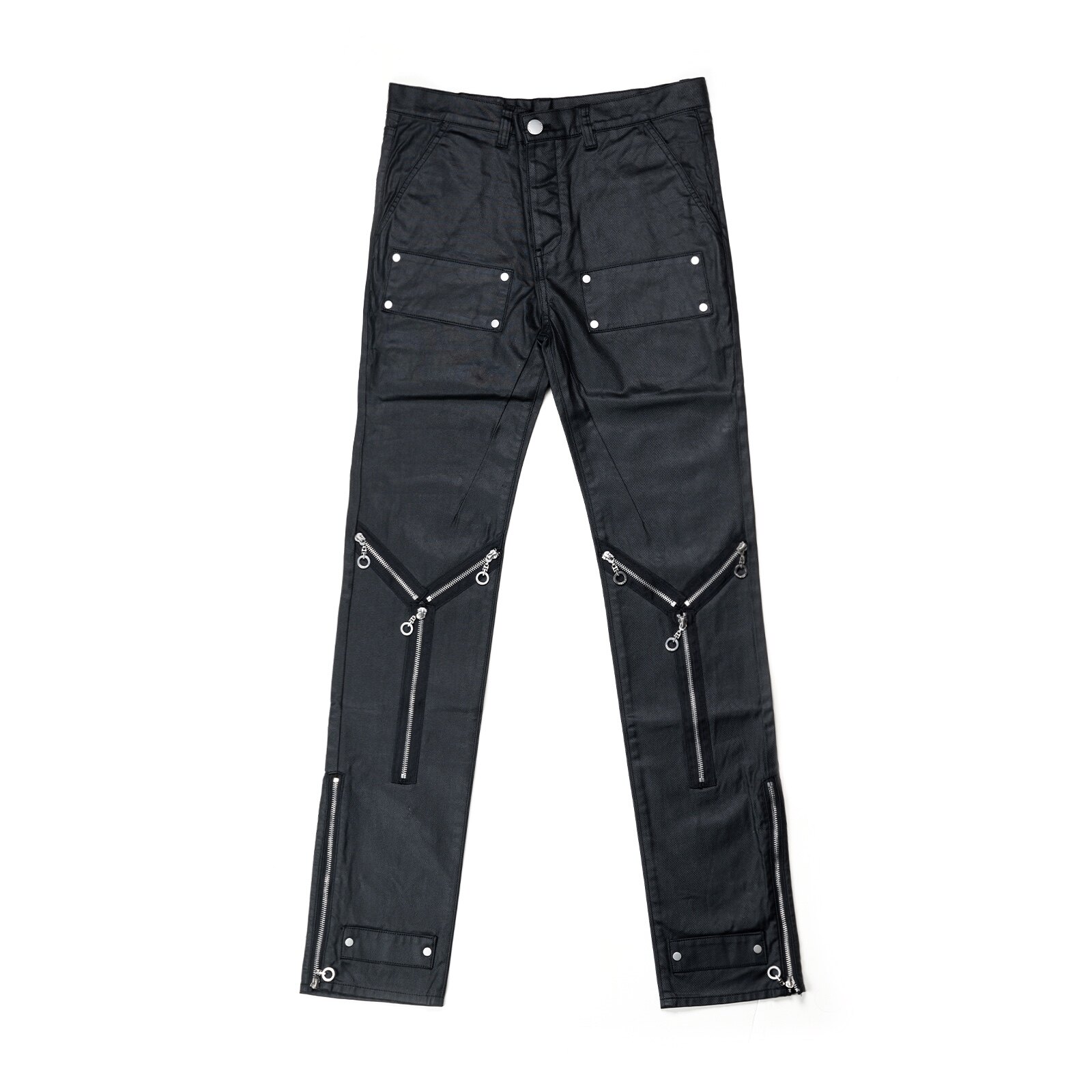 暗黑先锋蜡染涂层小众高街多拉链休闲中腰微喇叭长裤 OUT INSIDE由