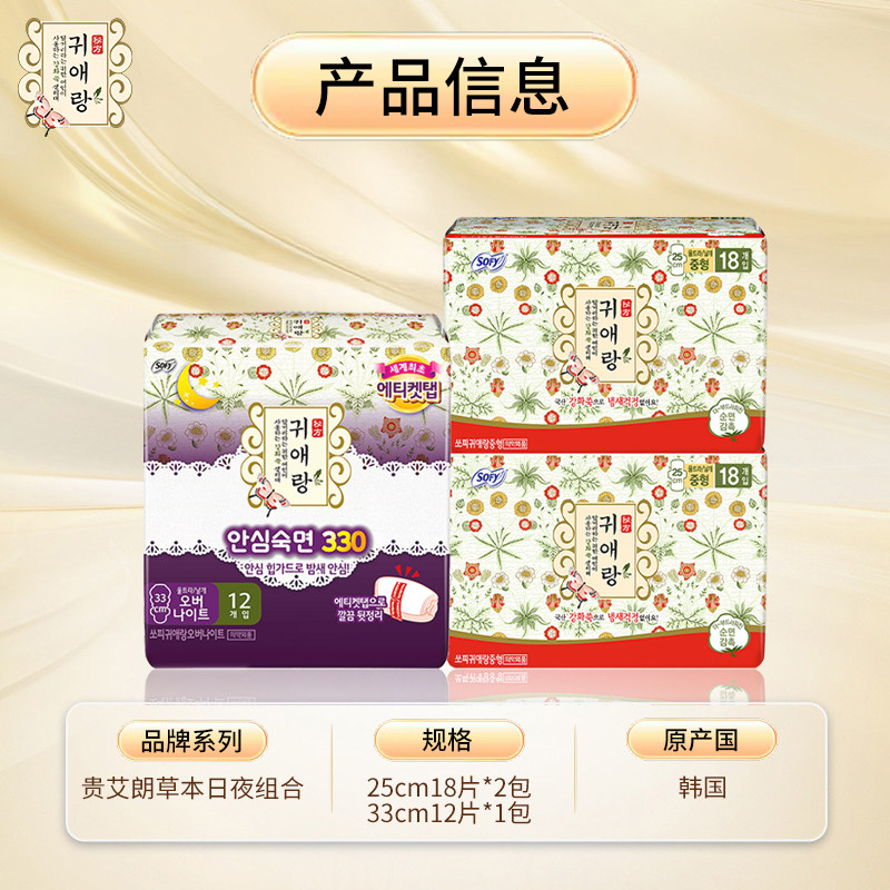 贵艾朗LG韩国进口棉柔亲肤草本卫生巾日夜套装 330mm1包 250mm2包