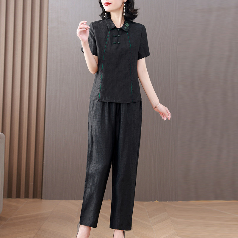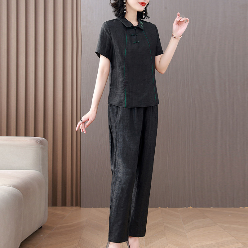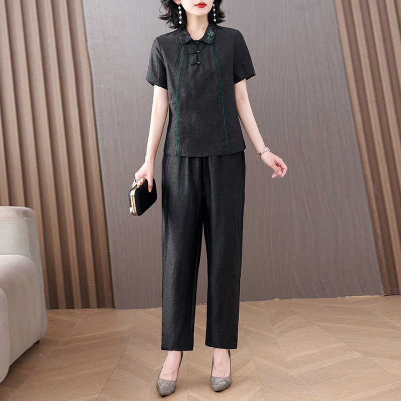 为您提供商品新款 香云纱真丝短袖 套装 女2024夏季 两件套 中老年妈妈桑蚕丝小脚裤的详细介绍,