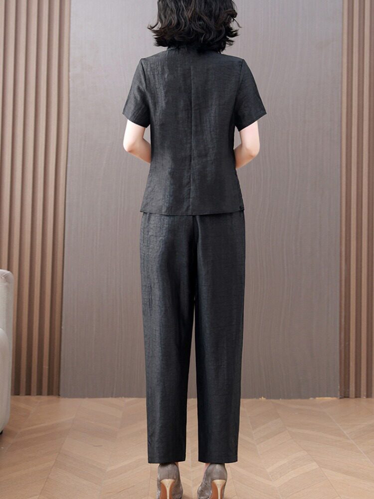 新款 香云纱真丝短袖 套装 女2024夏季 两件套 中老年妈妈桑蚕丝小脚裤