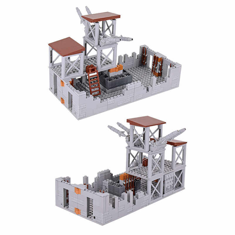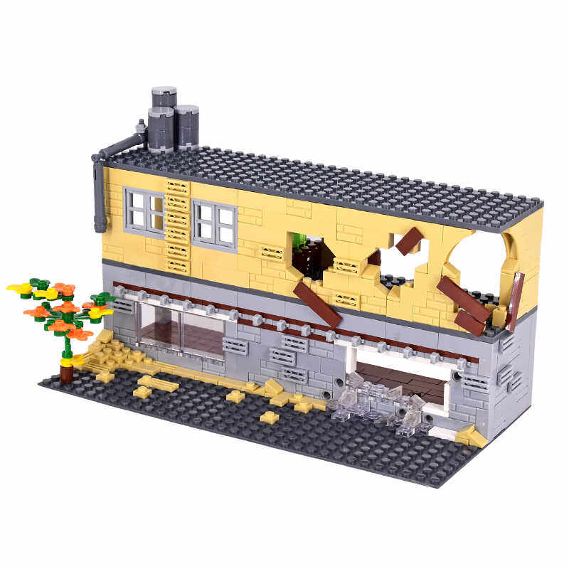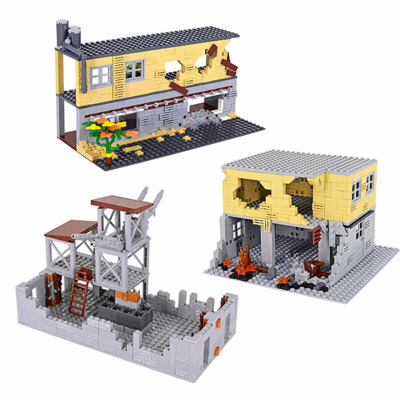 积木小颗粒楼房子玩具 军事基地战争场景一战二战废弃小楼男孩拼装由