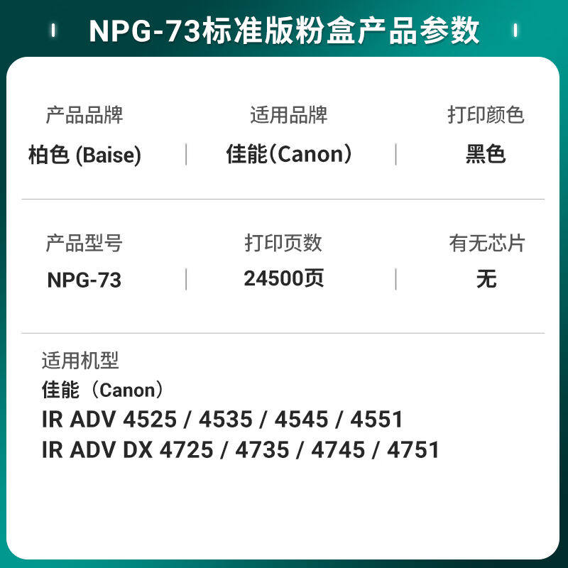 为您提供商品73粉盒适用佳能ADV4525粉盒45354545复印机4551DX4725墨 柏色NPG的详细介绍,