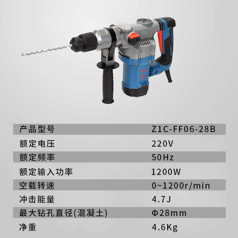 为您提供商品东成Z1C 28植筋电锤电镐工业1200W大功率冲击钻打混凝土家用 FF06的详细介绍,