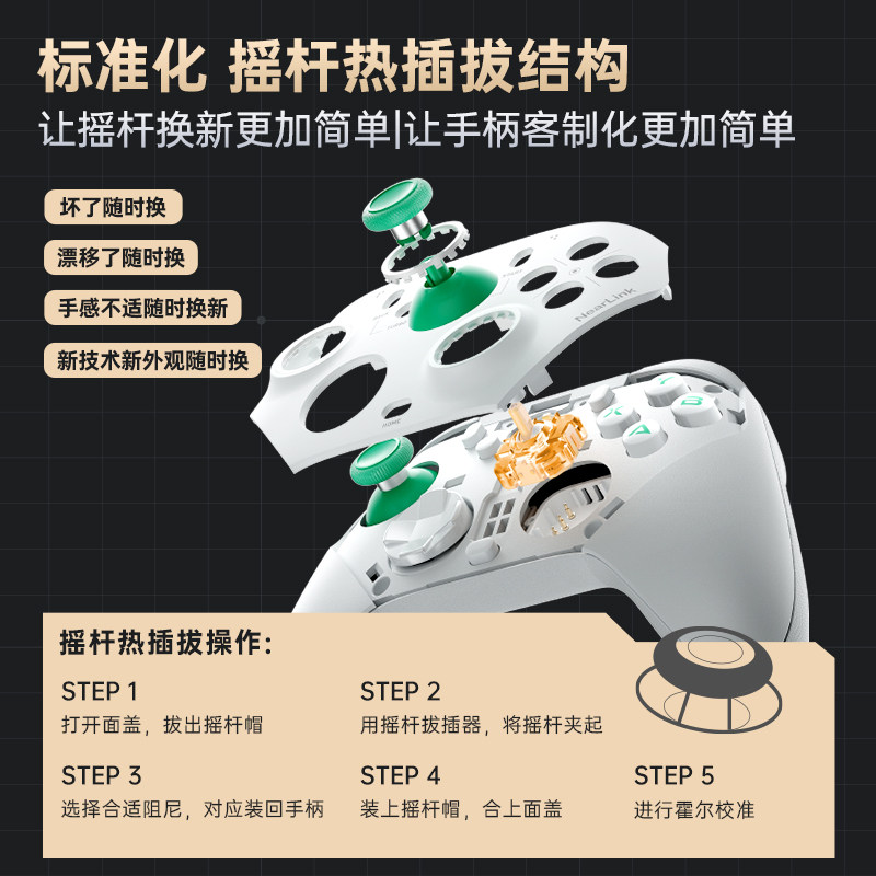V2游戏手柄 机械师霍尔热插拔摇杆 适配G6Pro G5Pro 模块化 客制化由