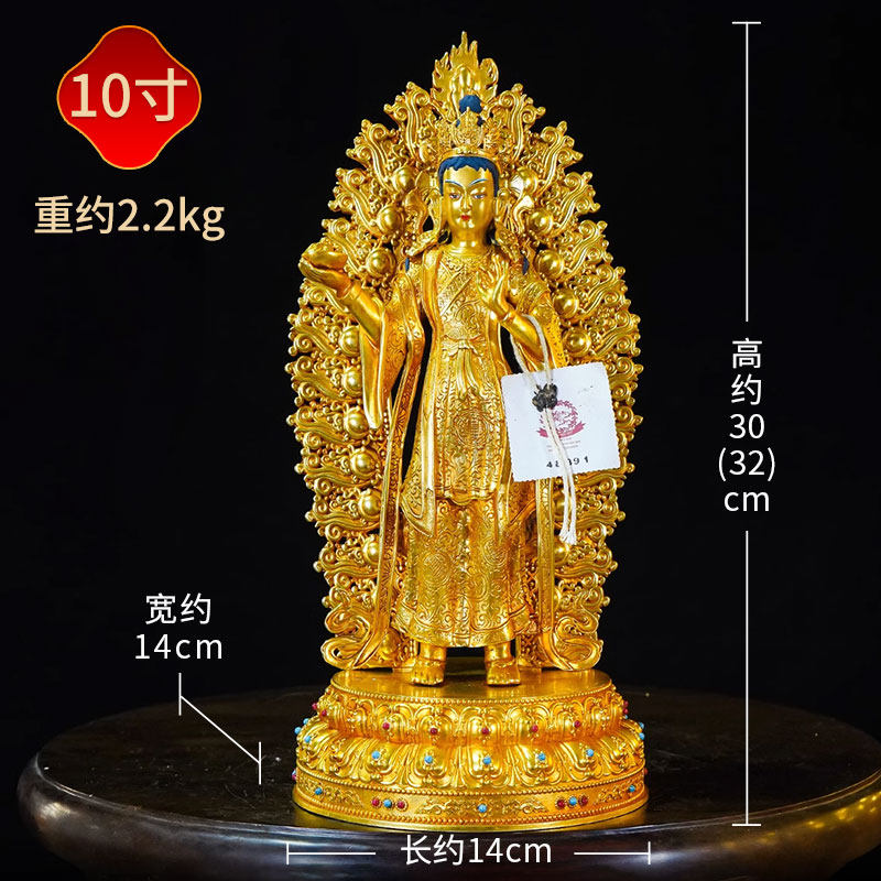 闯隆藏式 益西措嘉 铜像室内桌面铜雕花工艺装 饰摆件 铜鎏金10寸由