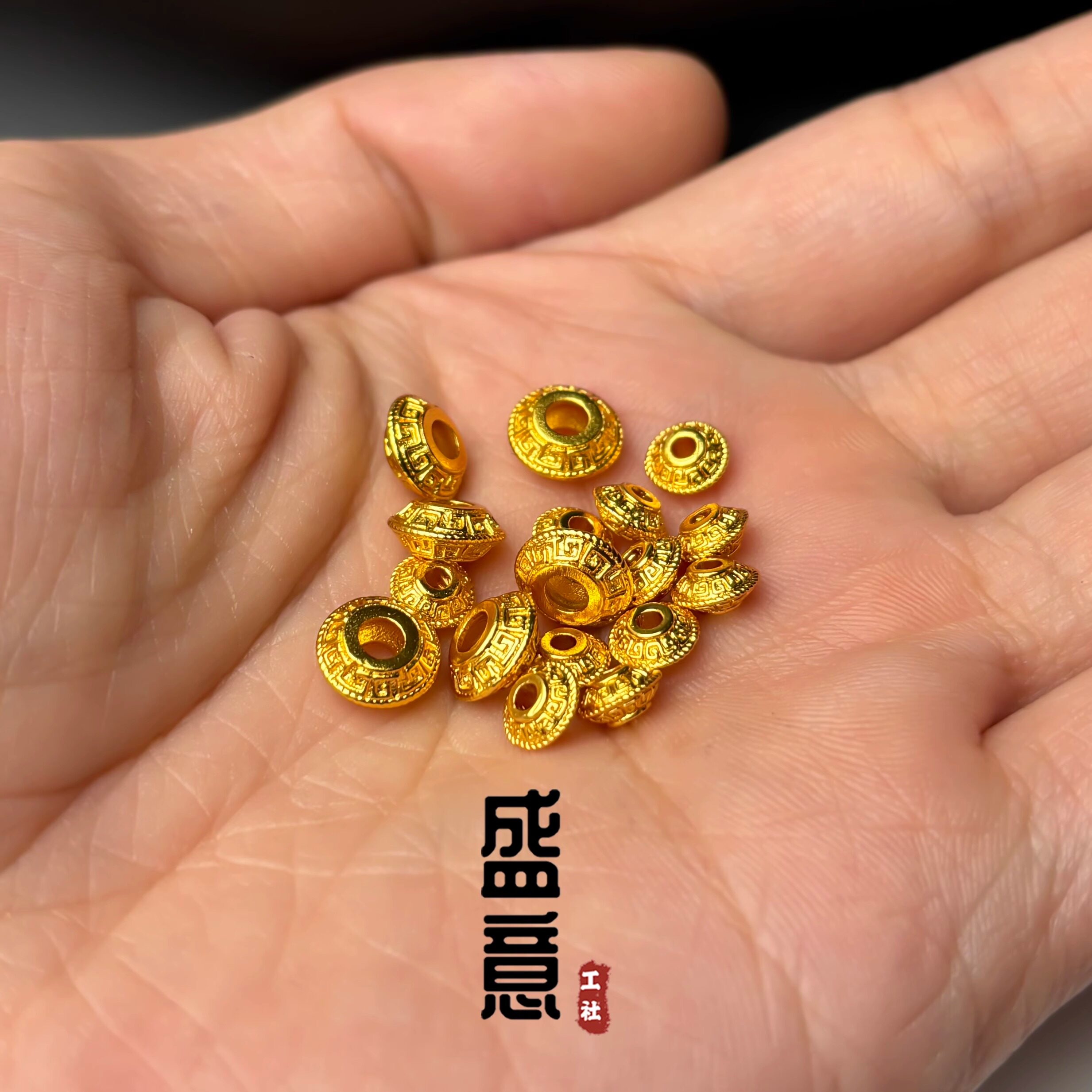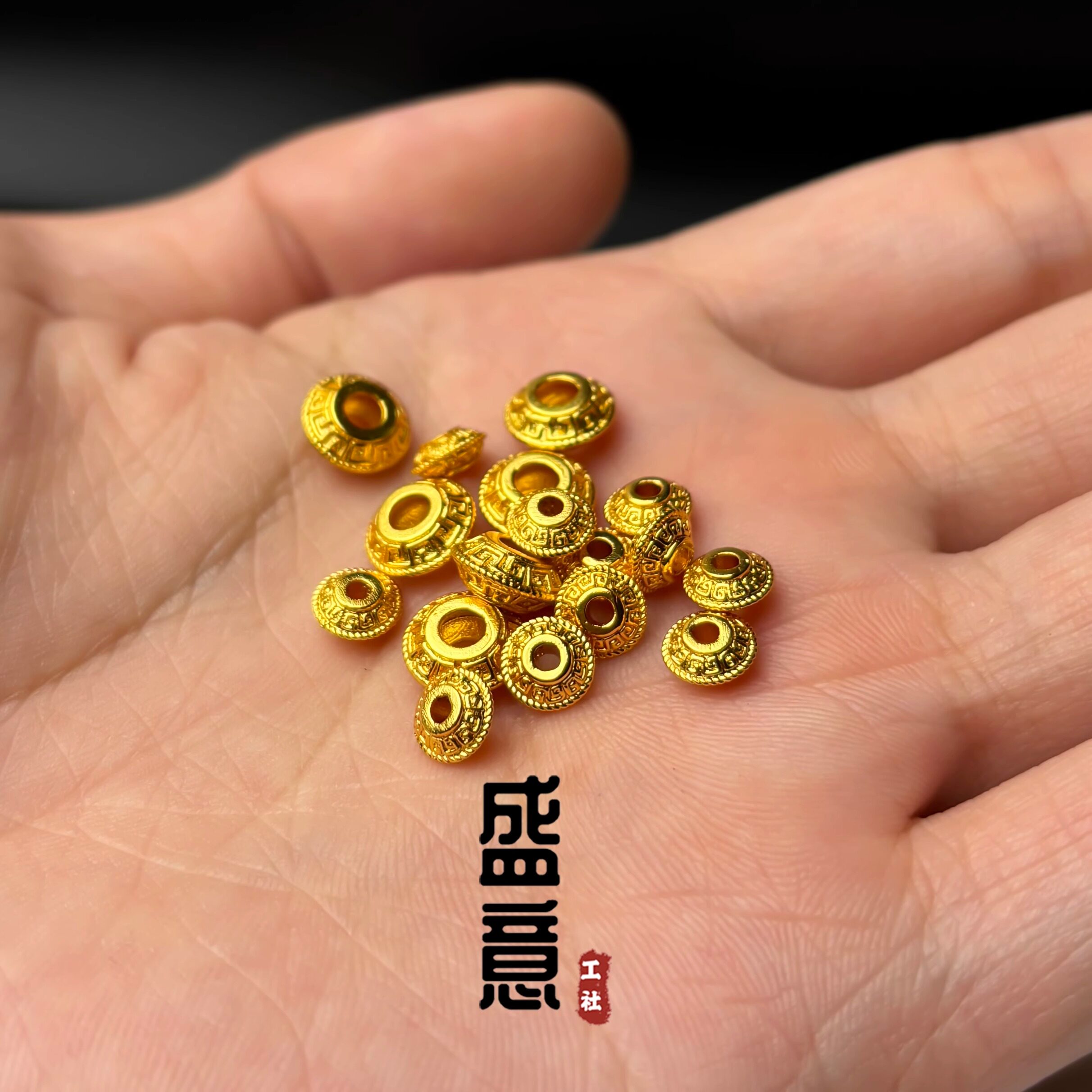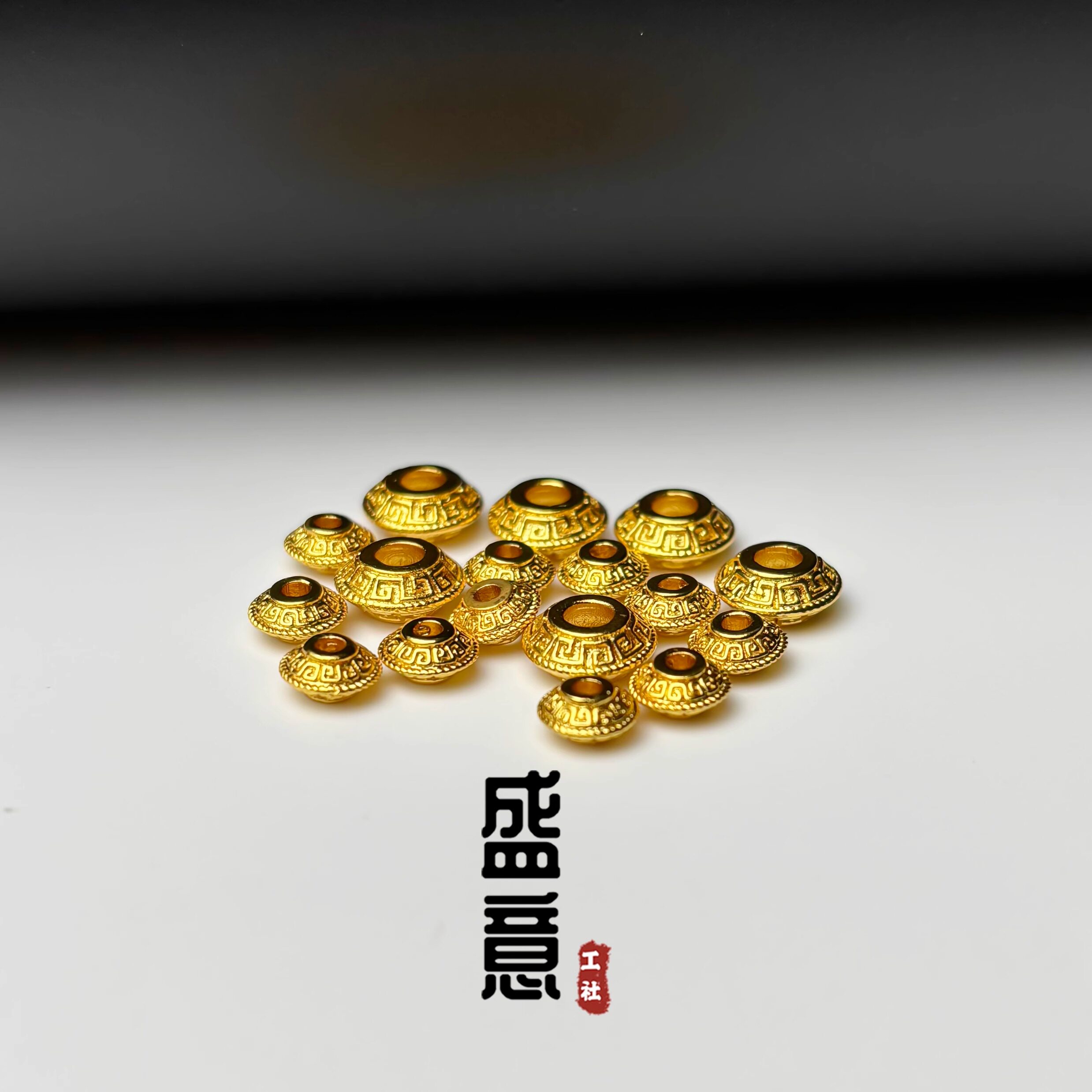 为您提供商品古法24K工艺黄金色保色925回纹飞碟隔珠隔片吊坠佛珠手串配饰的详细介绍,