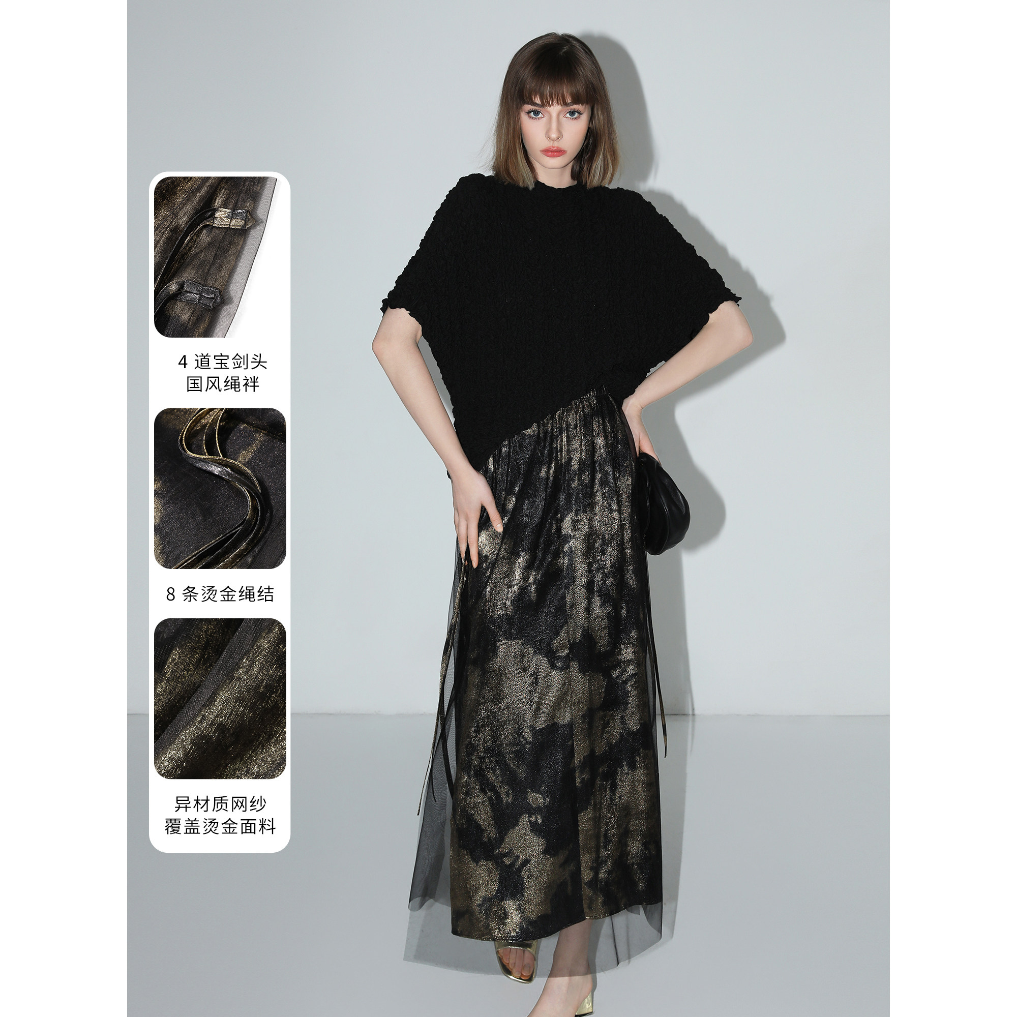 为您提供商品新中式 烫金网纱半身裙女开叉长裙HS0028 浮金碎影 COCOBELLA的详细介绍,