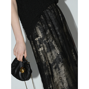 新中式 烫金网纱半身裙女开叉长裙HS0028 浮金碎影 COCOBELLA由