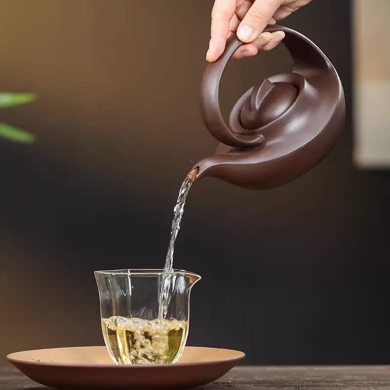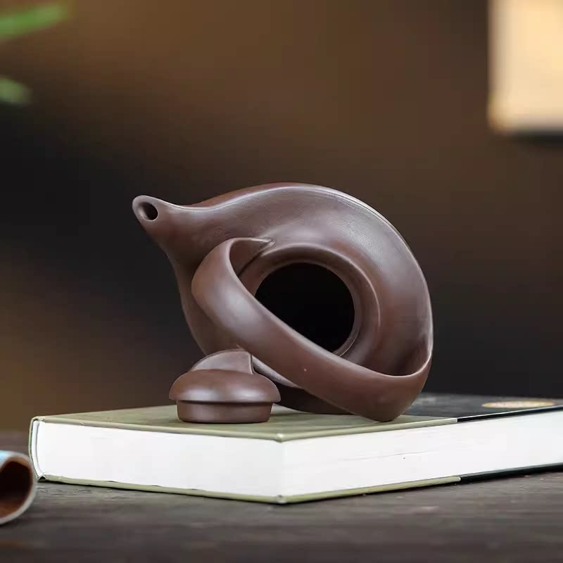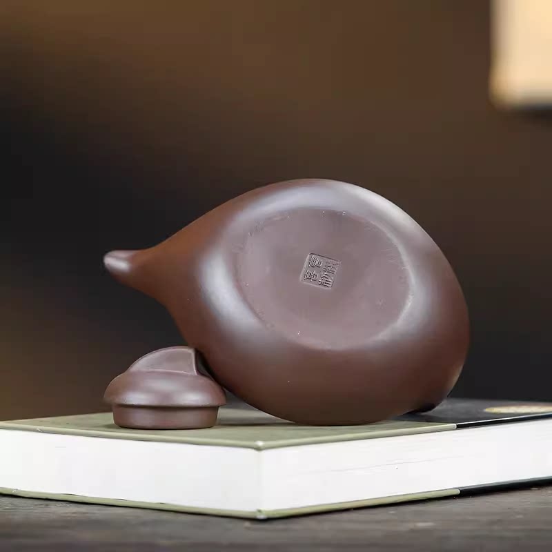 新品 茶具 宜兴紫砂壶原矿老紫泥手工一帆风顺曲壶400毫升
