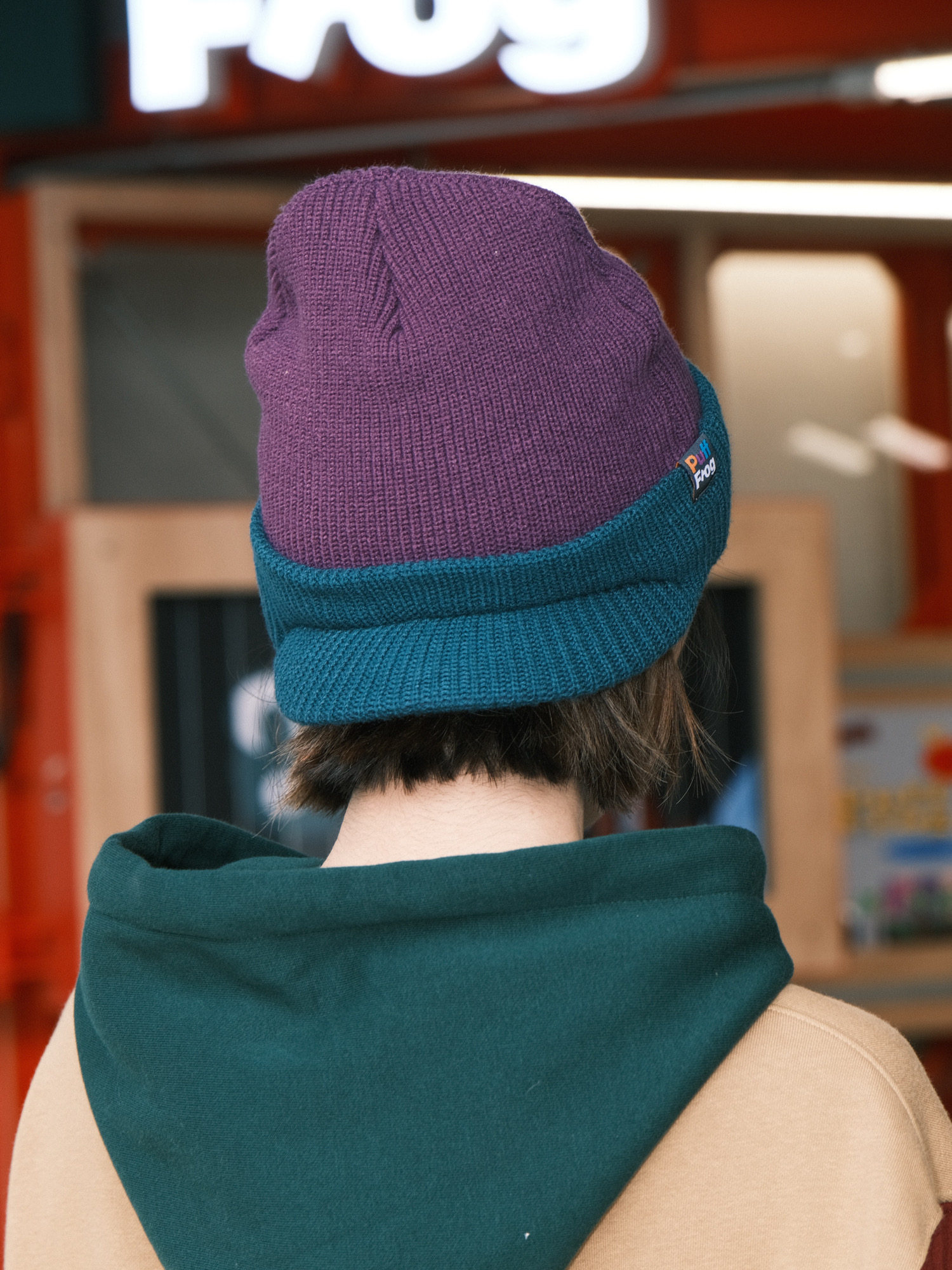Visor Beanie泡芙蛙帽檐撞色针织冷帽保暖毛线帽 Knit PuffFrog