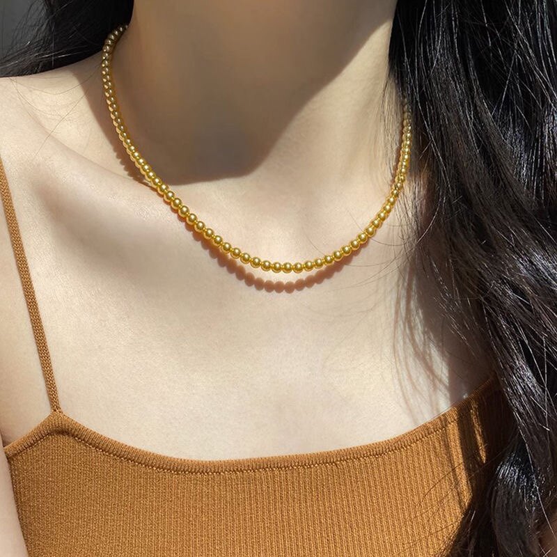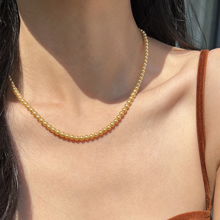 施家珍珠项链女小米珍珠锁骨链金珍珠项链新款 网红颈链饰品 爆款