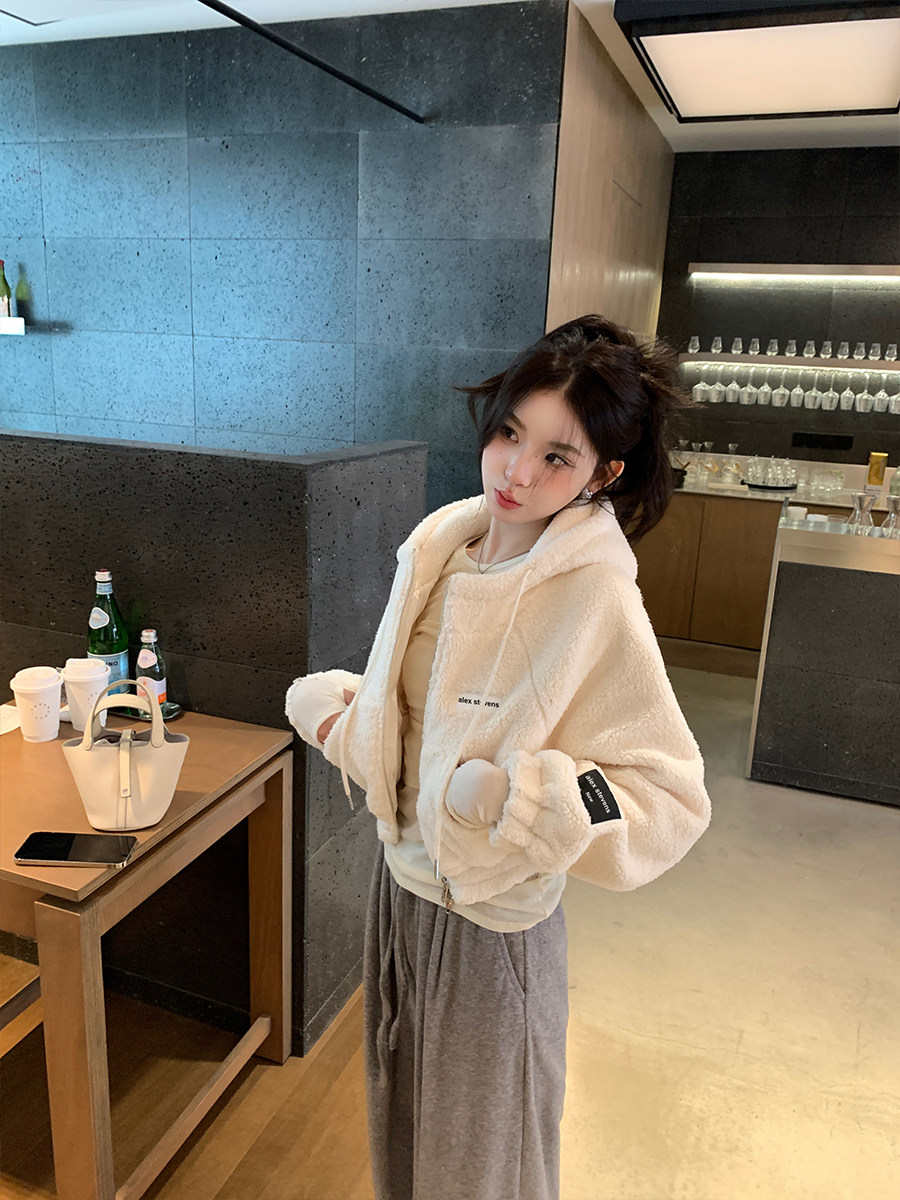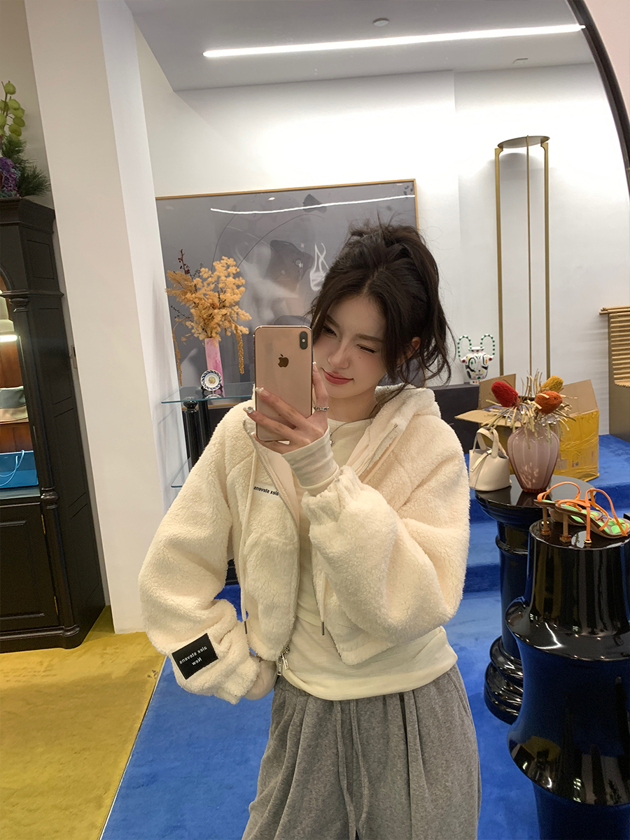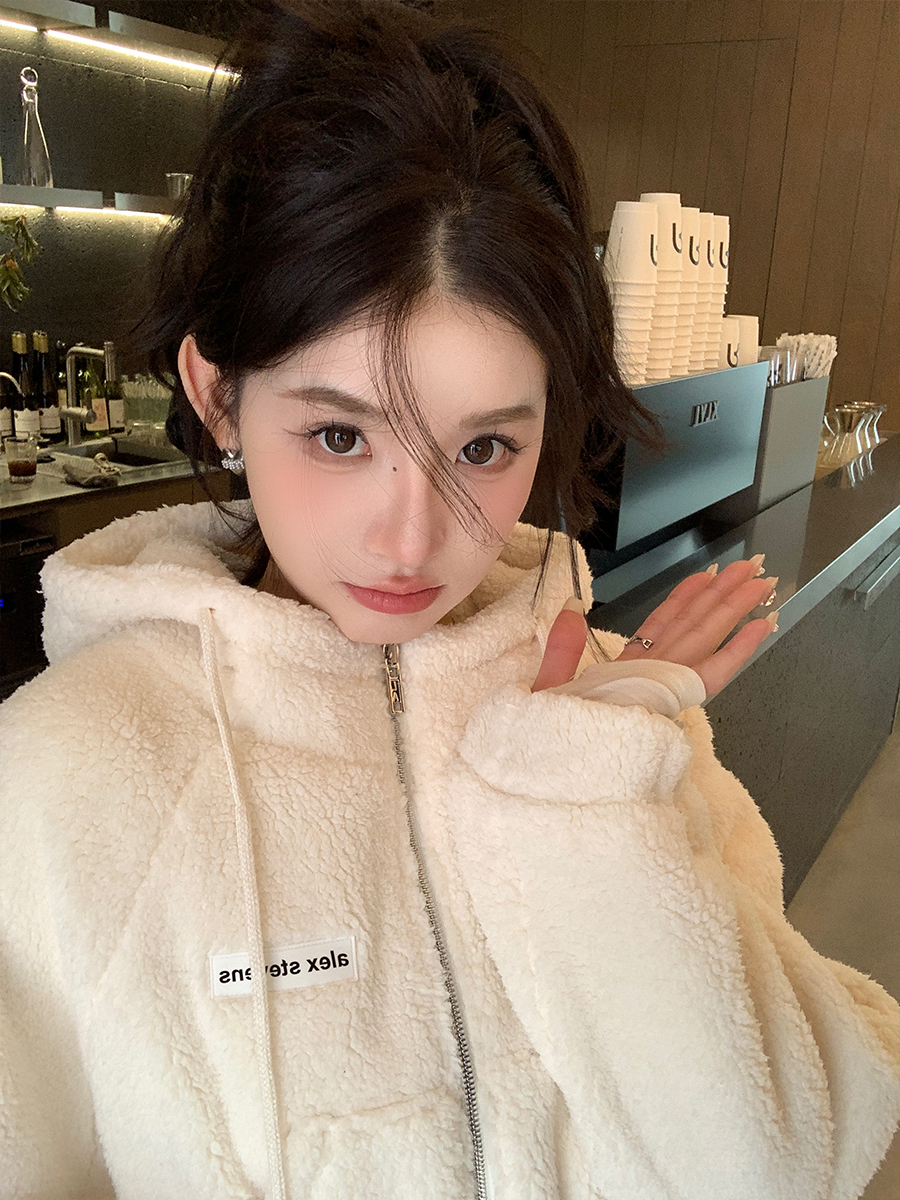 羊羔毛外套女冬季 连帽毛绒加厚毛毛外套 stevens奶fufu~短款 alex由