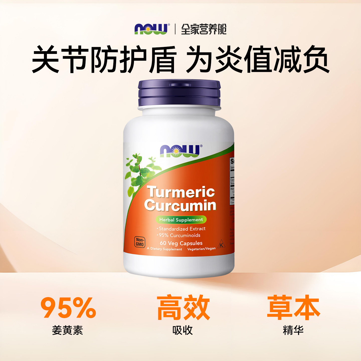 NOW美国进口curcumin姜黄素95%精华根提取物补剂胶囊美国进口60粒由