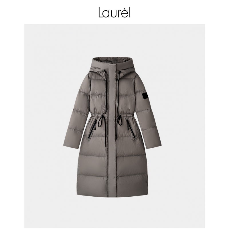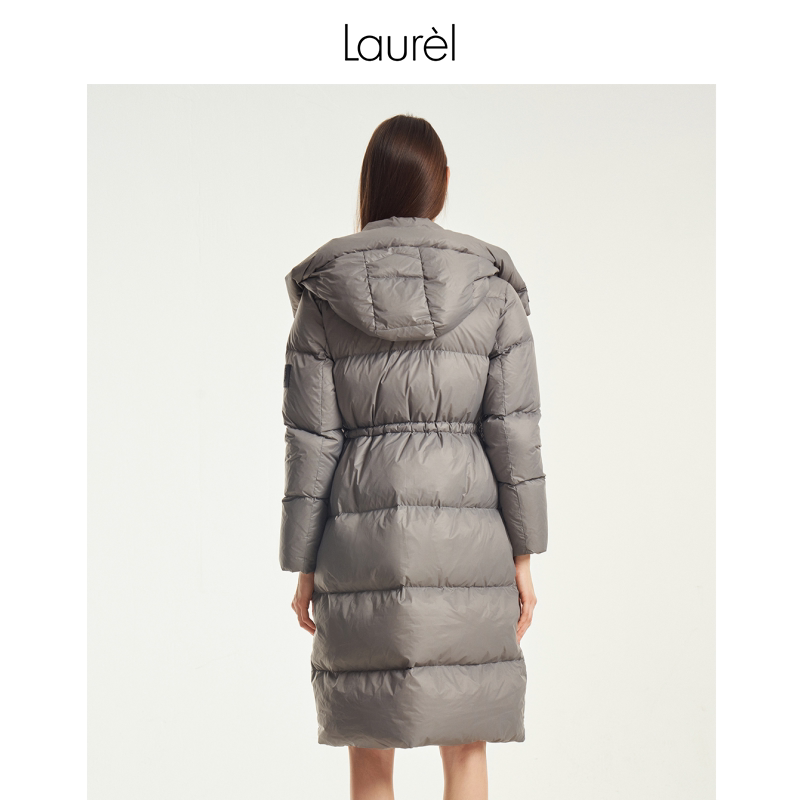 Laurel劳芮新款 抽绳收腰连帽中长款 羽绒服LWD343L01600 白鹅绒由