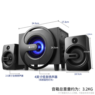 Golden 金河田 电脑音响笔记本手机蓝牙音箱2.1低音炮 Field由