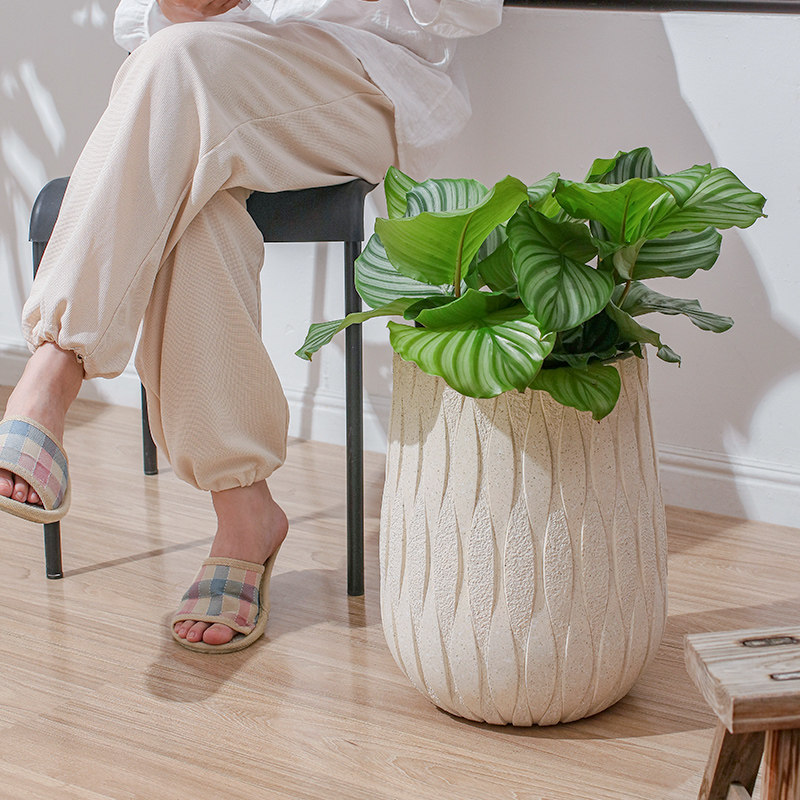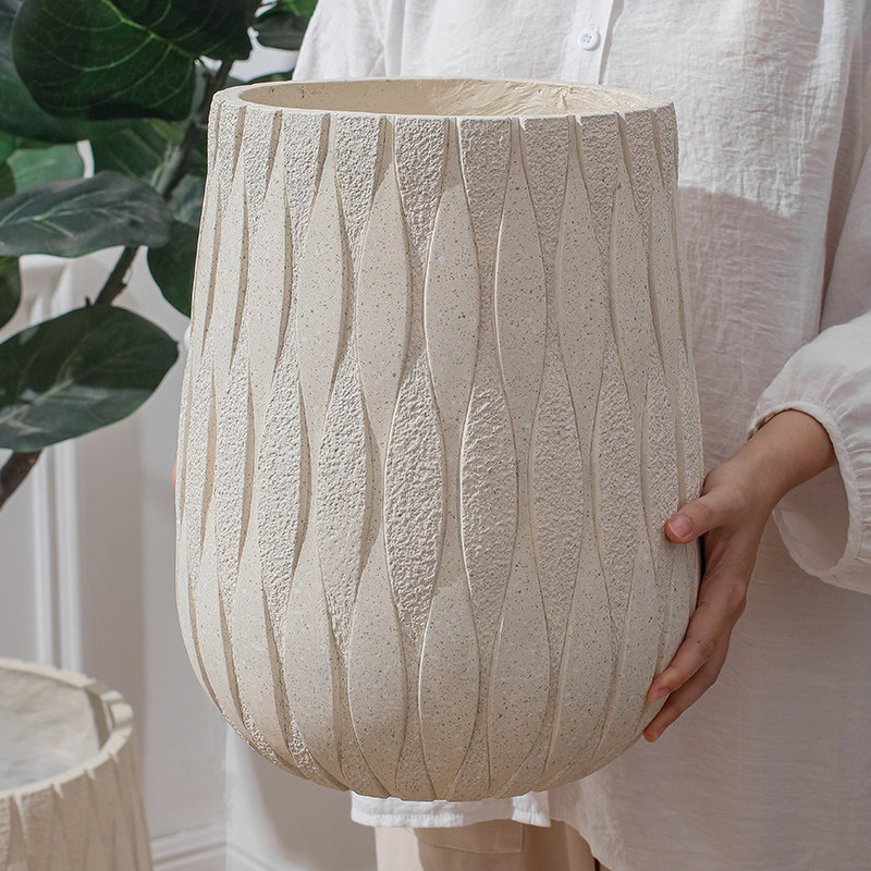 轻奢高级感镁泥花盆大号琴叶榕百合竹幸福树龙血树高筒落地大花盆