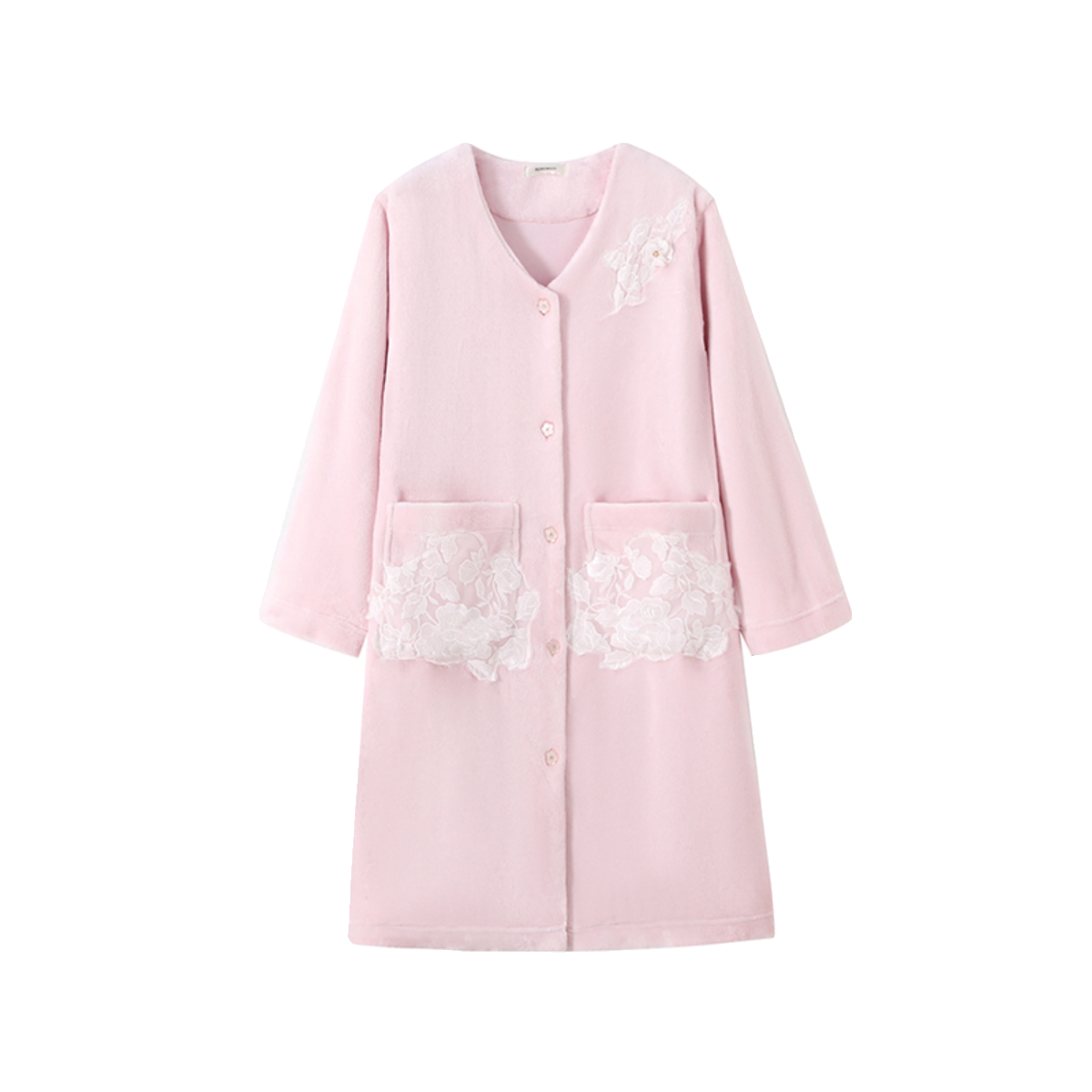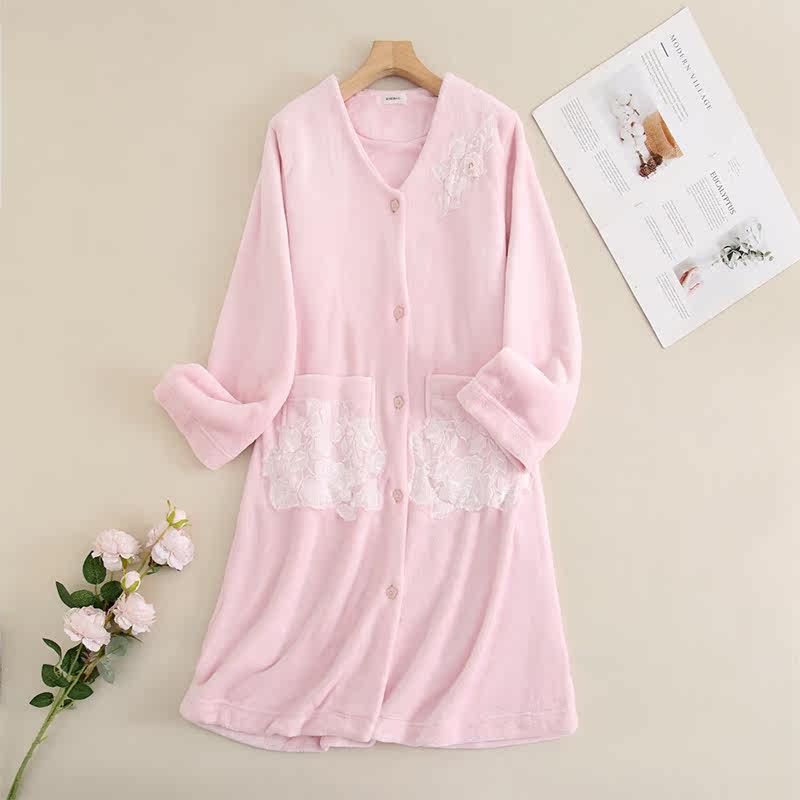 19209法兰绒中长款 V领纯棉睡裙女家居服 罗丝美秋冬新品 Rosemaid