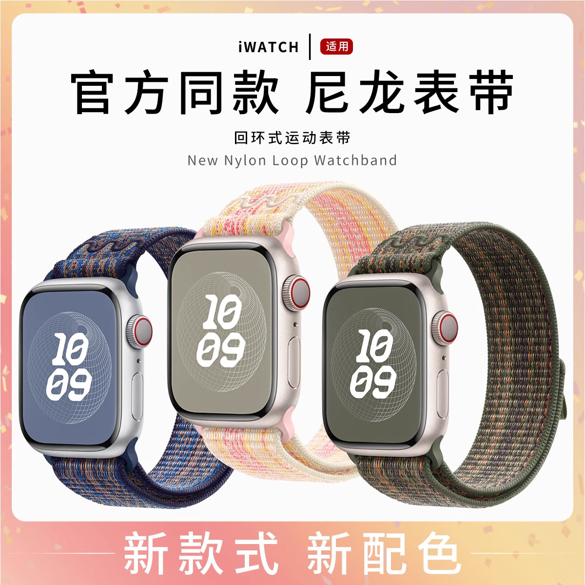 表带苹果手表iwatch9 8ultra官方同款 表带10 SE魔术贴户外运动编织新表带 适用applewatchS11尼龙回环式