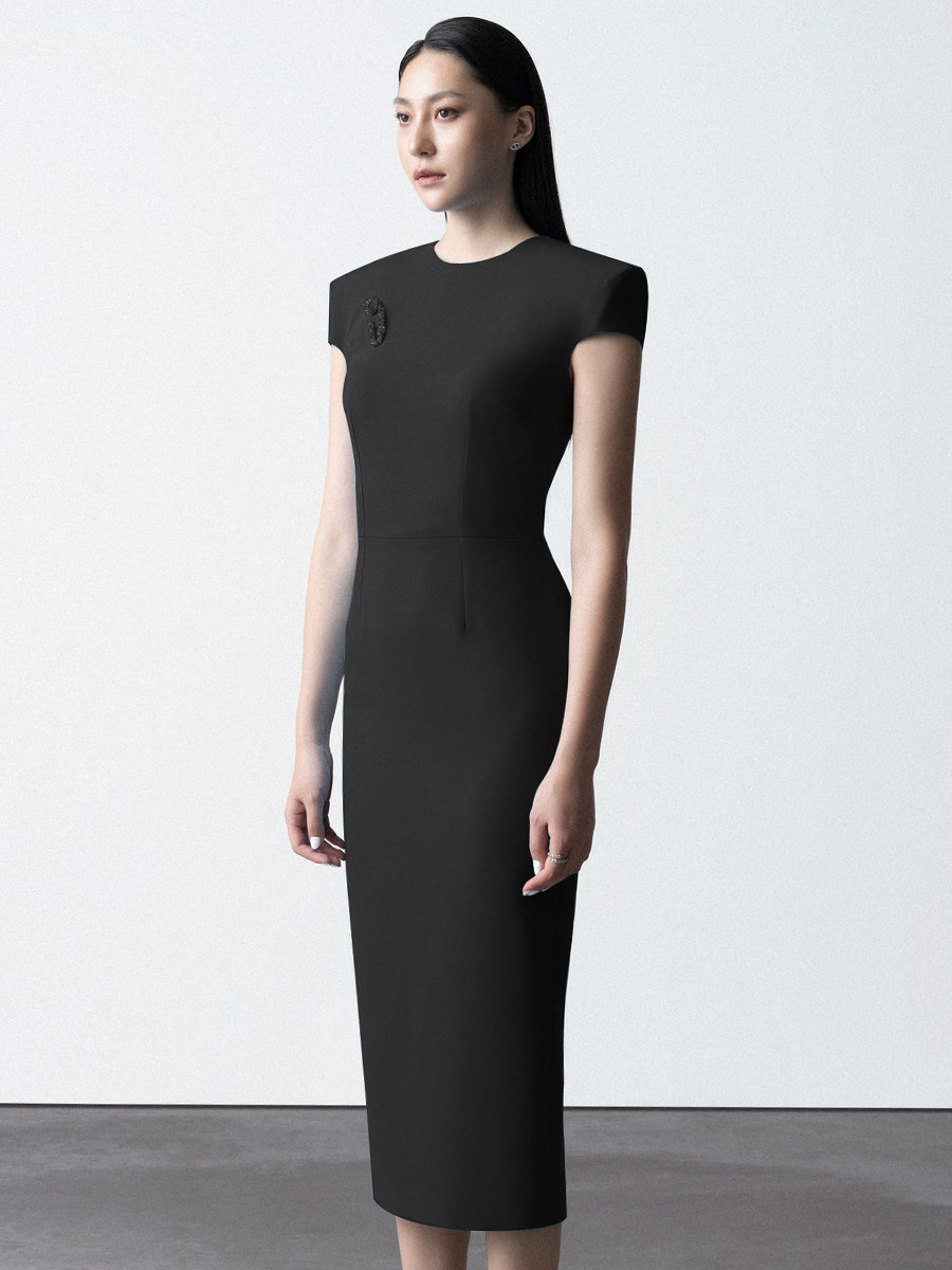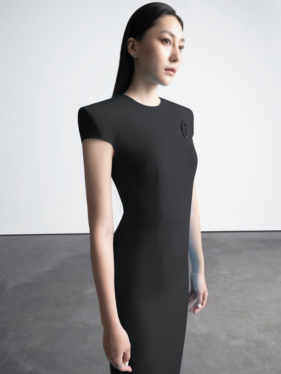 ORIGIN 知觉之门大气简约小圆领垫肩气场女王高级感小黑裙 SENSE由
