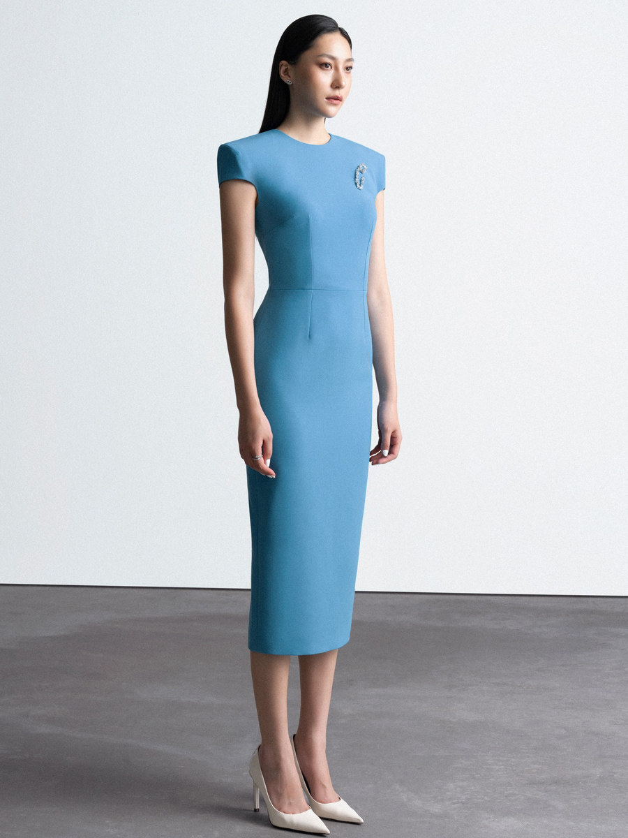 ORIGIN 知觉之门大气简约小圆领垫肩气场女王高级感小黑裙 SENSE