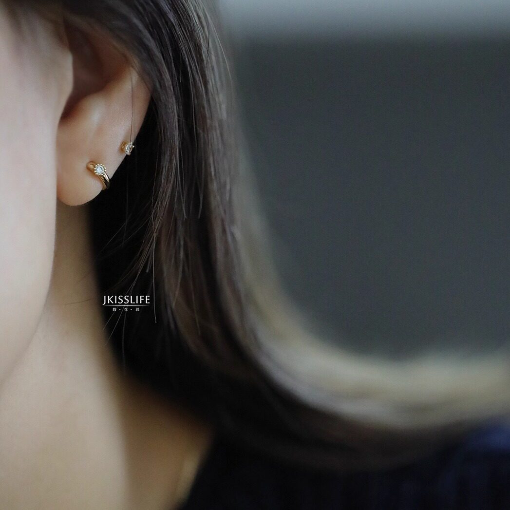 K金耳环耳圈 9K黄金 精致时髦 微镶锆石 蛋糕边 极简设计感 法式由