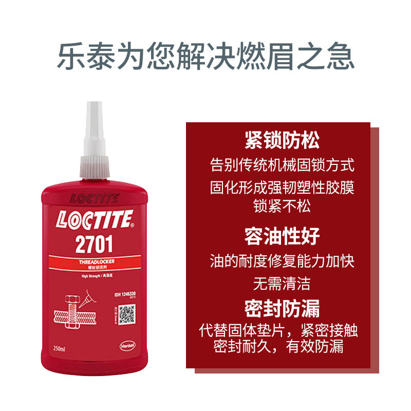 为您提供商品乐泰螺纹锁固 高强度螺纹密封抗震动耐油溶剂可发荧光螺丝胶 2701的详细介绍,