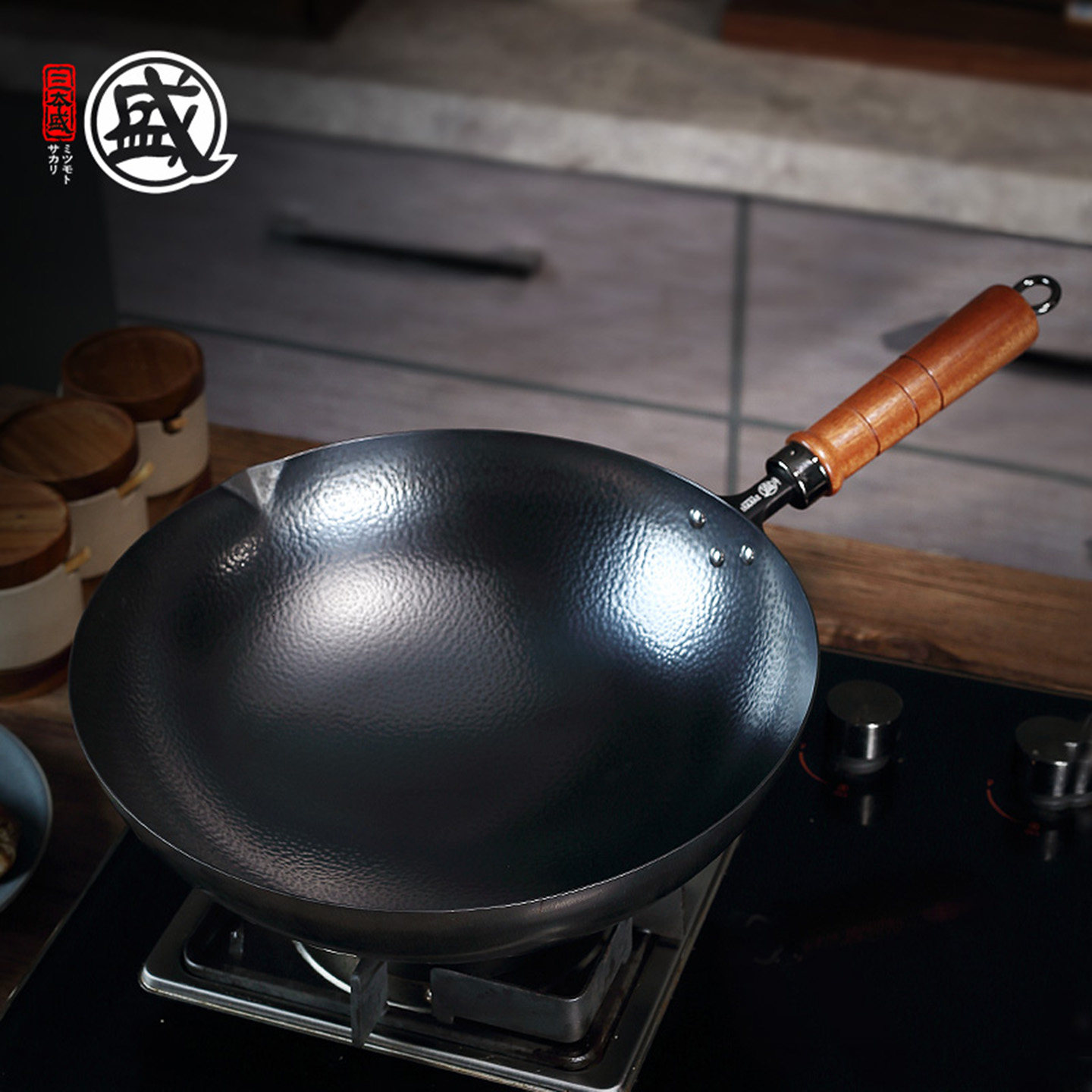 家用炒菜锅不粘无涂层燃气灶专用 三本盛日本铁锅炒锅手工锻打老式