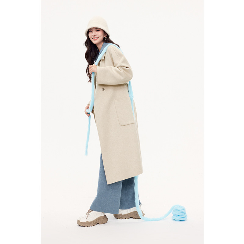 反季 双面羊毛大衣女长款 纯手工缝制高端毛呢外套 孤品捡漏