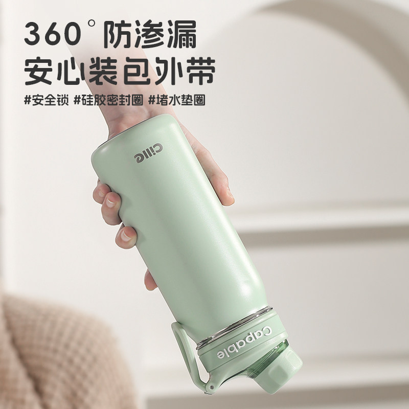 杯具熊锐气双饮保温杯户外便携运动水壶不锈钢保冷杯学生吸管杯子