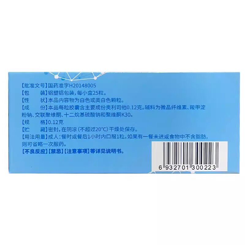 为您提供商品0.12g 25粒用于肥胖或体重超重 奥利司他胶囊 碧生源的详细介绍,